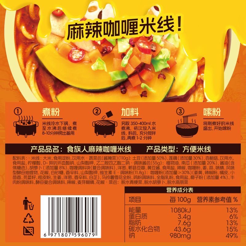 📚 新品食族人麻辣酸汤咖喱米线袋装大份量自煮米线米粉方便速食