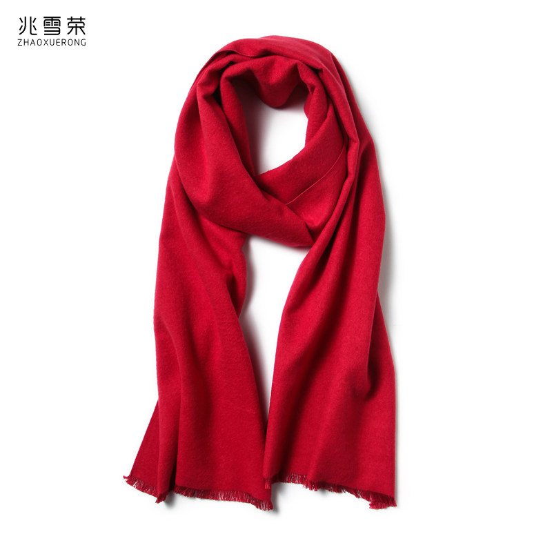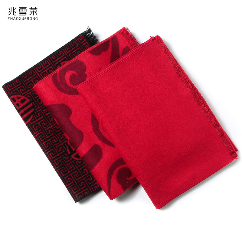 围巾桑蚕丝大红色真丝年会