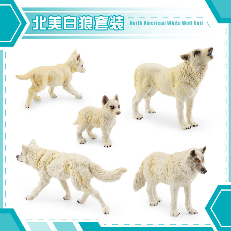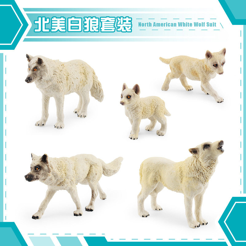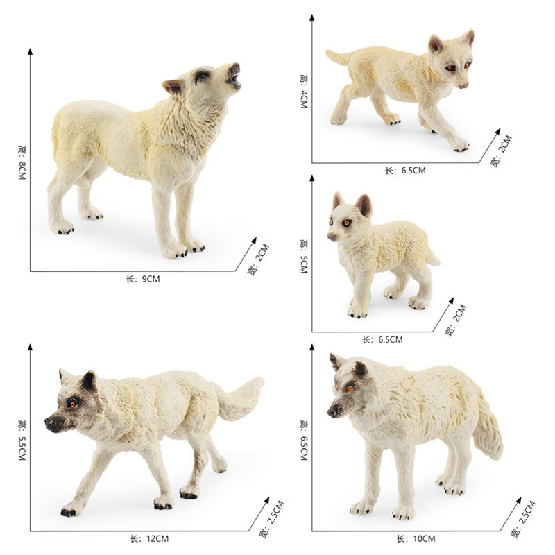 📚 跨境热销仿真北美狼群套装狼王幼崽儿童野生动物模型摆件实心玩具