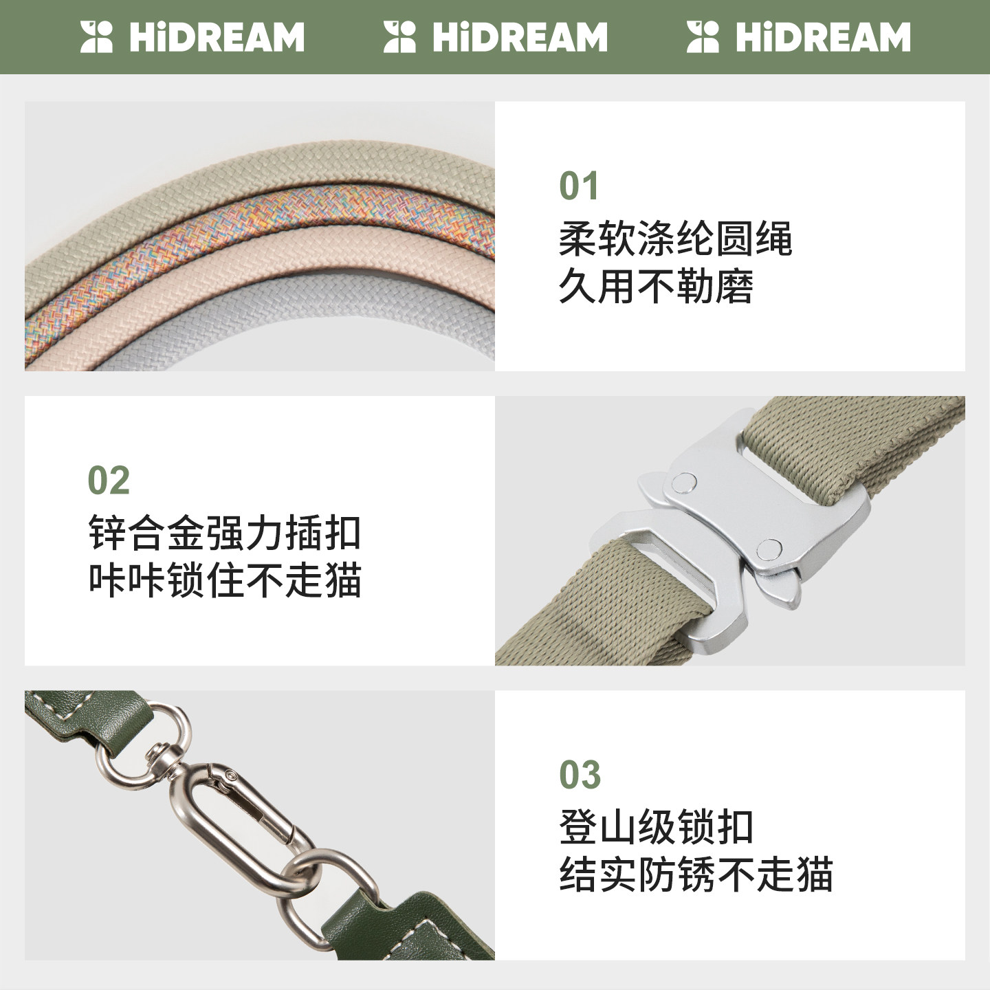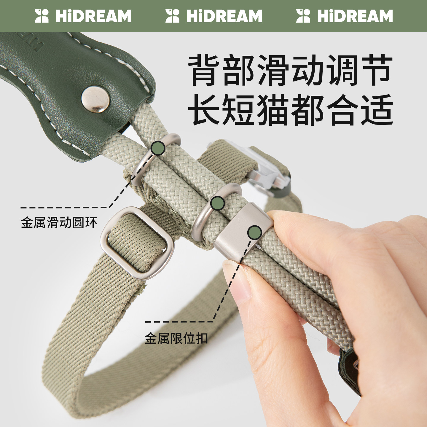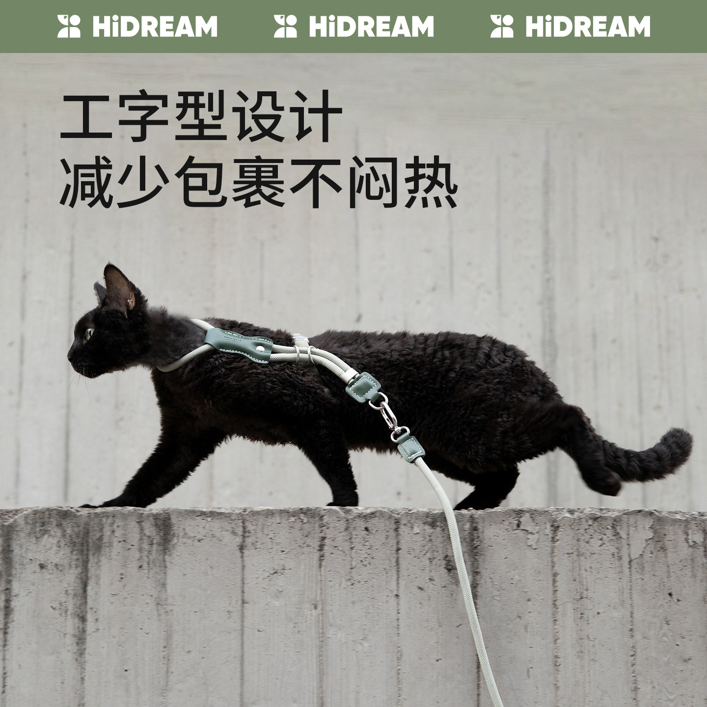📚 HiDREAM猫胸背带套装可调节工字形防挣脱不闷热猫咪牵引绳