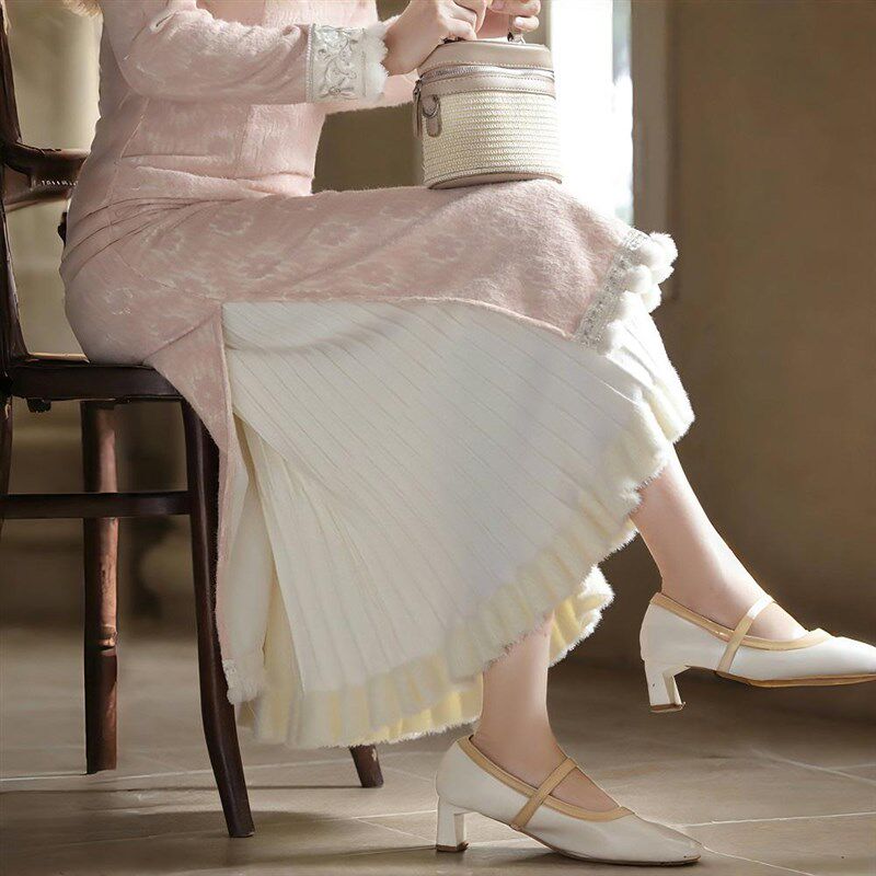 📚 旗袍内搭衬裙汉服打底裙防走光内衬松紧腰半身裙蕾丝针织长裙秋冬