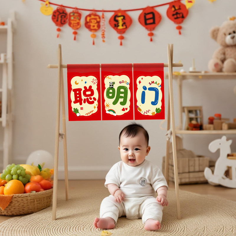 📚 宝宝周岁礼聪明门抓周道具布置儿童1周岁生日仪式过葱门木架装饰