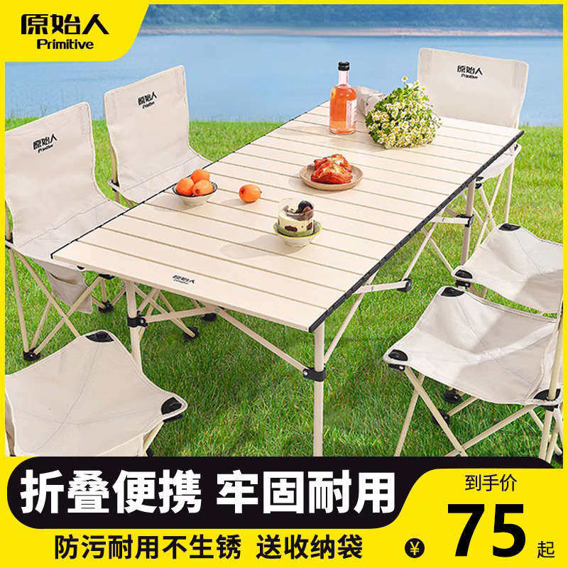 📚 原始人户外折叠桌便携式露营桌子野餐桌椅套装野营用品装备蛋卷桌