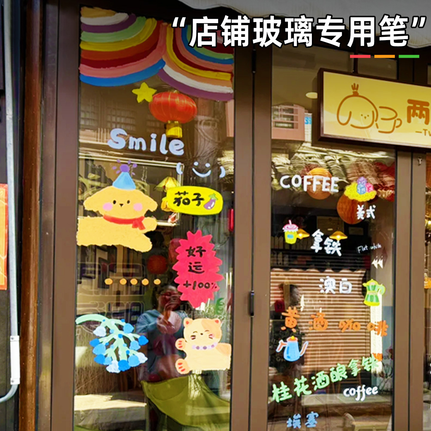 📚 玻璃可擦笔马克笔涂鸦笔海报玻璃门黑板镜面可擦彩色记号笔直液式丙烯软头荧光板亚克力橱窗专用笔厨房24色