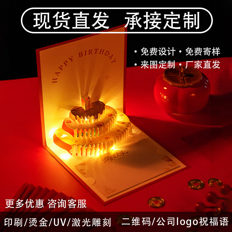 📚 生日贺卡公司定制感恩祝福语LOGO创意商务明信片卡立体雕刻小卡片
