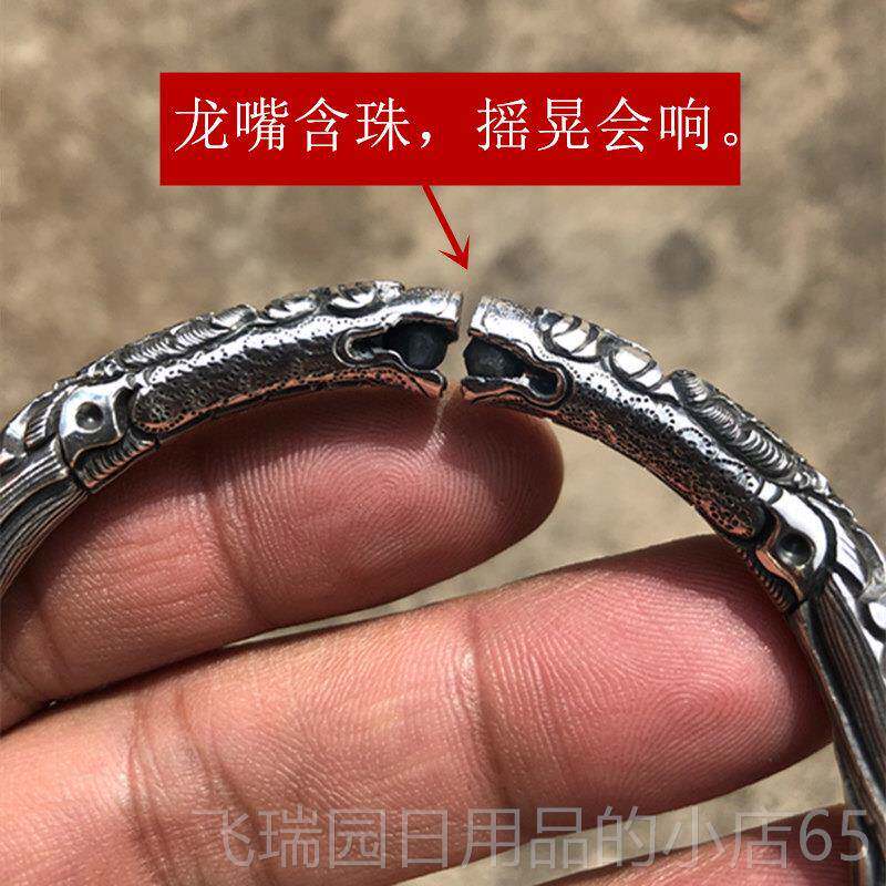 📚 正品红银九响门同款手镯男女复99老纯银个性手工实心男士古二环镯