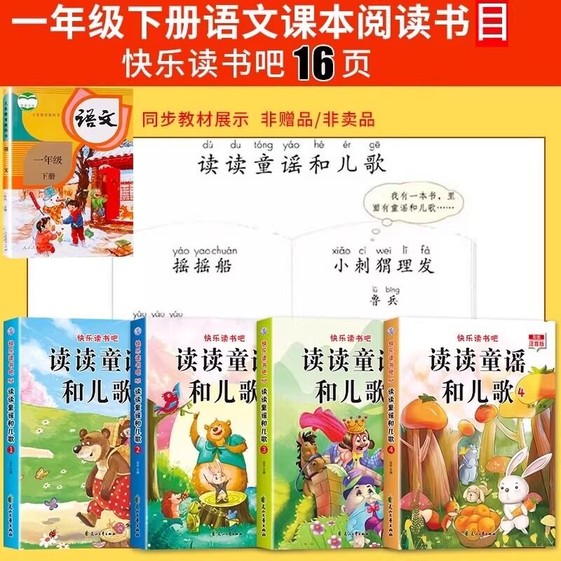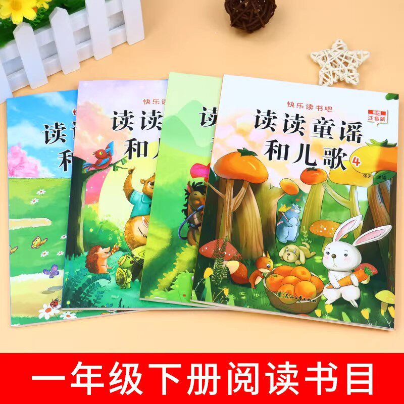 📚 读读童谣和儿歌一年级下册全套4册注音版 一年级阅读课外书必读正版书籍快乐读书吧配套人教版书目一下学期和大人一起读200首绘本