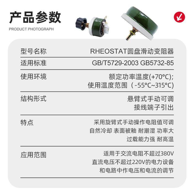 📚 BC1大功率负载瓷盘圆盘线绕可调电阻滑动变阻器电位器 25W50W100W