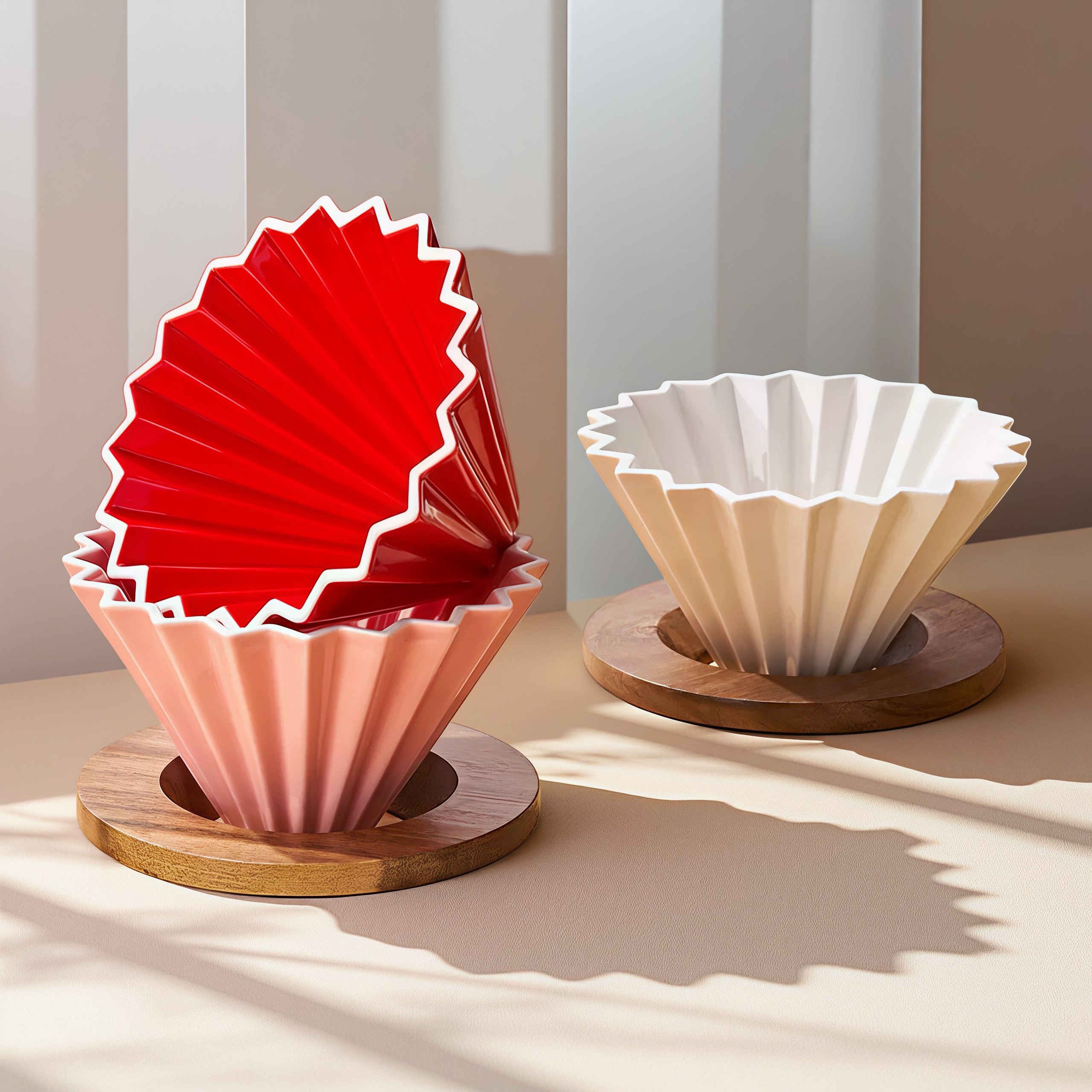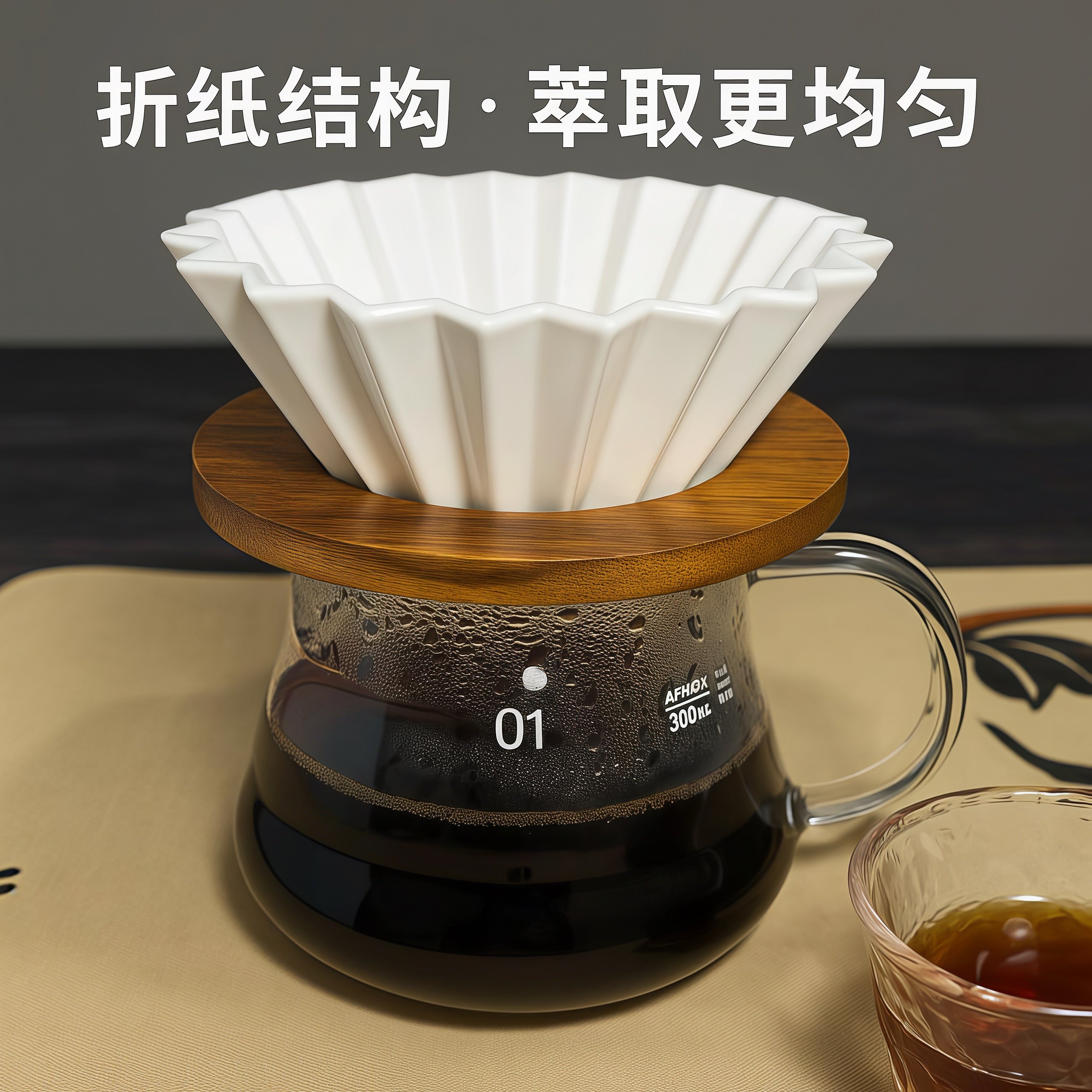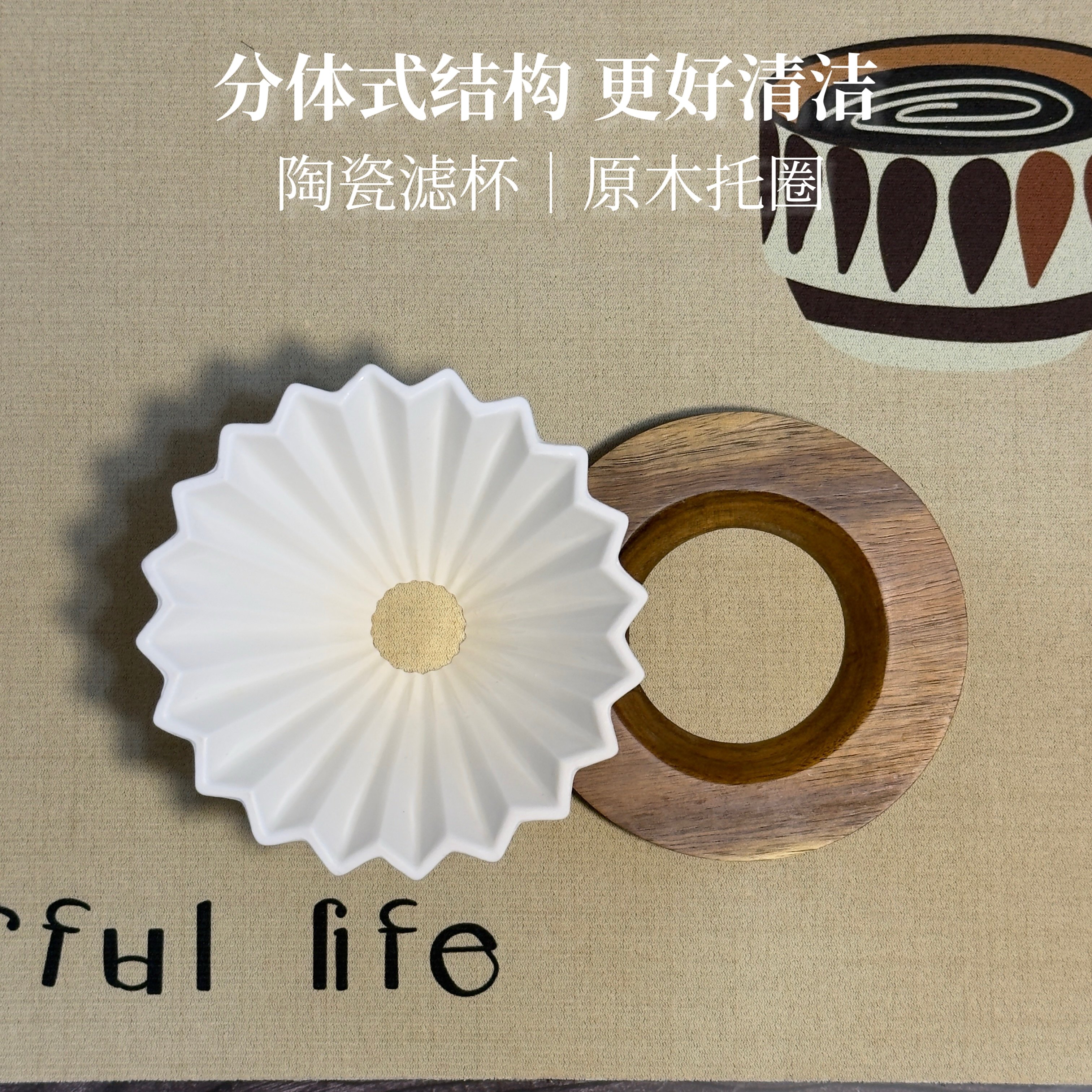 📚 日式陶瓷折纸滤杯蛋糕杯手冲咖啡过滤杯V60实木杯托底座家用滴滤