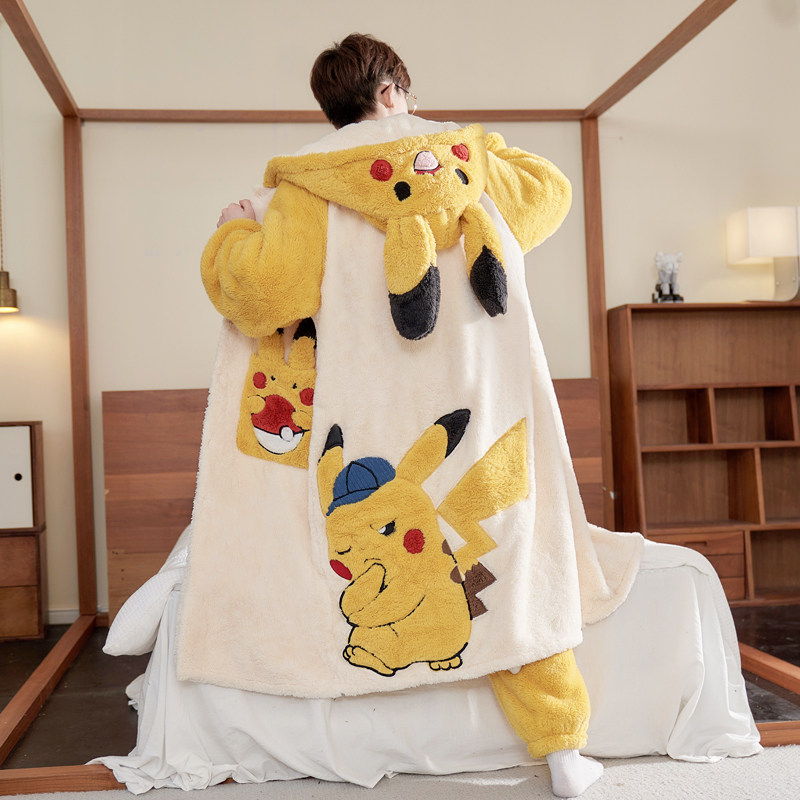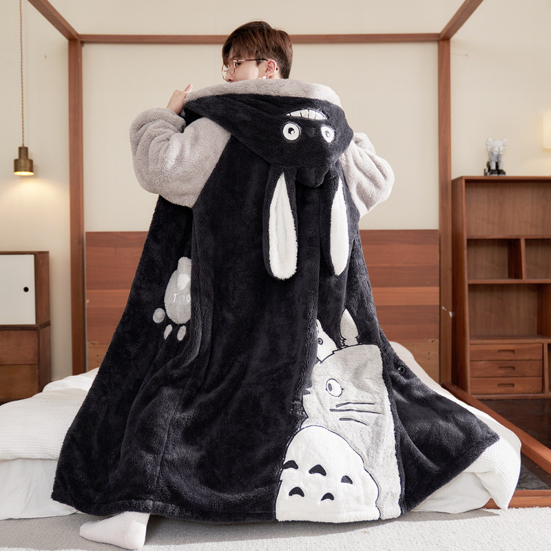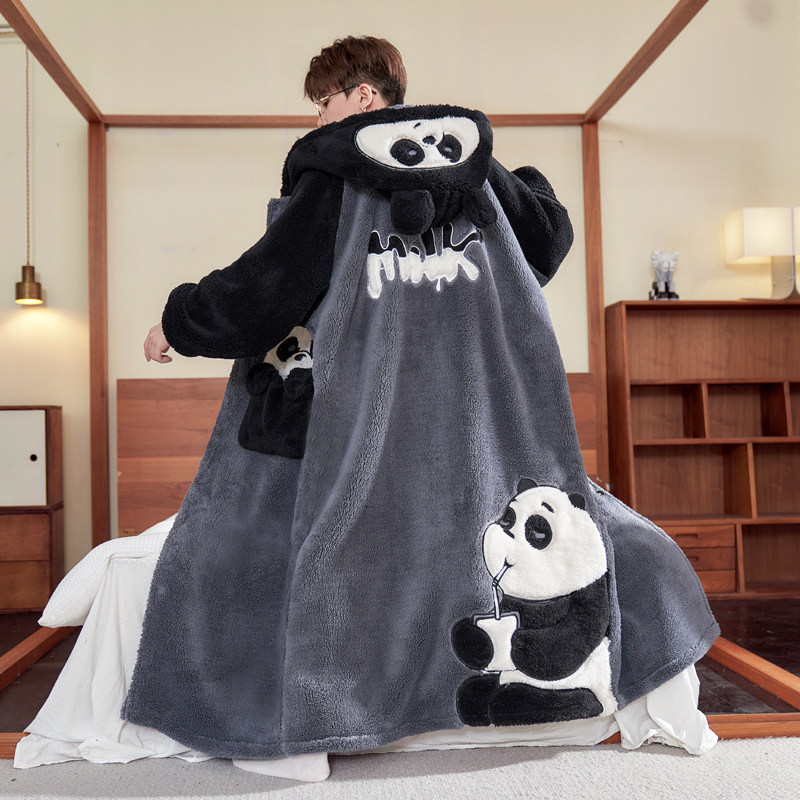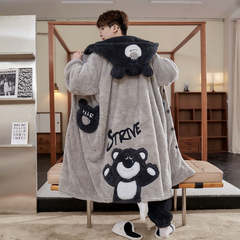 📚 睡衣男士冬季珊瑚绒长款睡袍浴袍套装秋冬款天加厚加绒保暖家居服