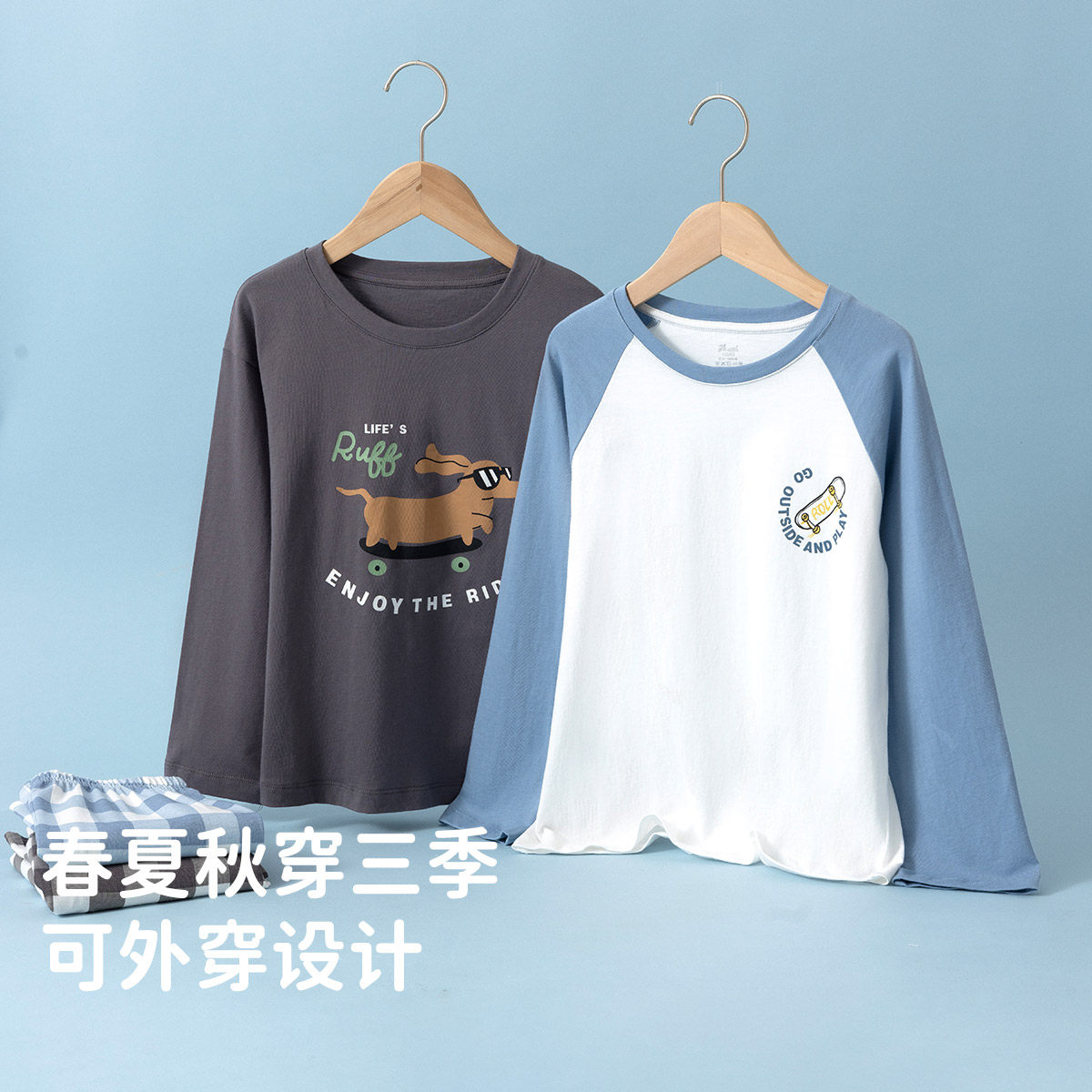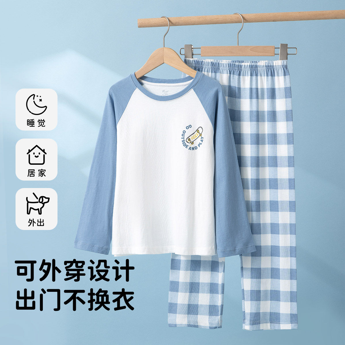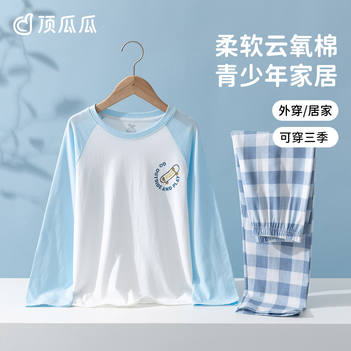 📚 顶瓜瓜纯棉青少年睡衣顶呱呱中大童胖童春秋长袖可外穿家居服套装
