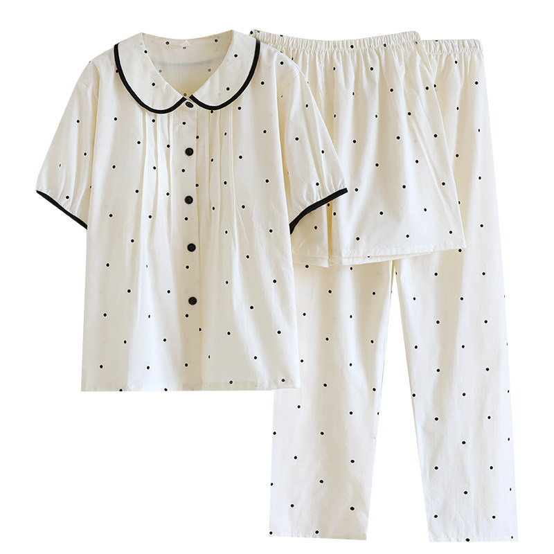 📚 带胸垫三件套睡衣女夏季短袖纯棉纱布开衫全棉麻家居服套装可外穿