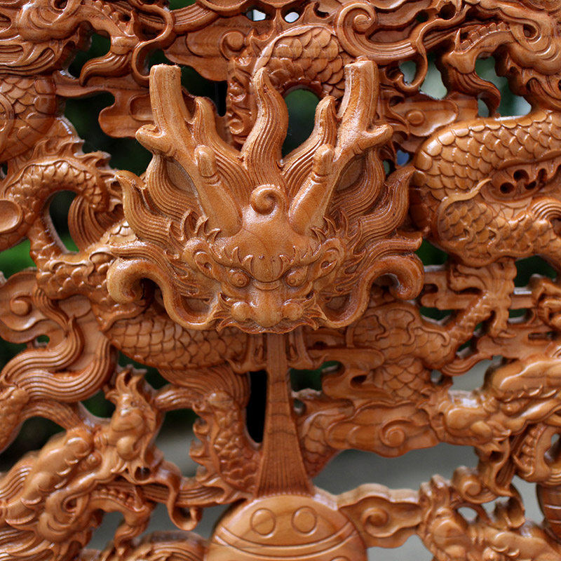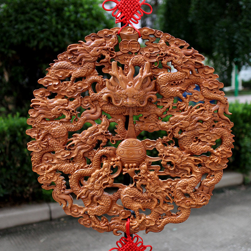 📚 桃木九龙献瑞九龙戏珠九龙壁挂件摆件木雕玄关客厅店铺镇宅招财
