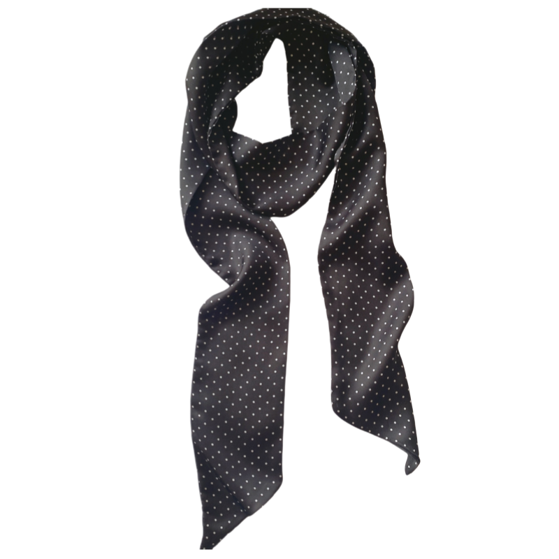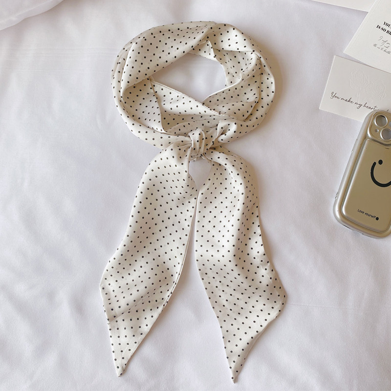 📚 韩版百搭小小点黑白长款飘带丝巾领巾 复古波点长条腰带腰绳腰饰