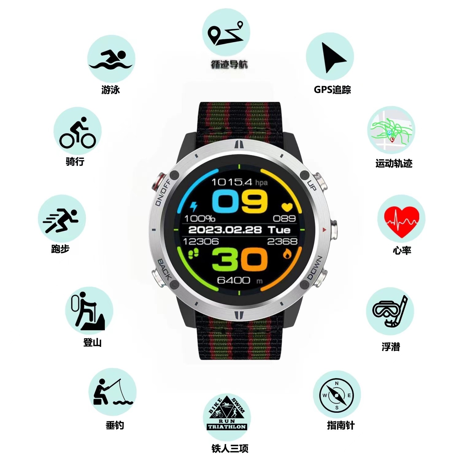 📚 北斗GPS户外运动手表海拔高度气压指南针跑步铁三项钓鱼男士腕表