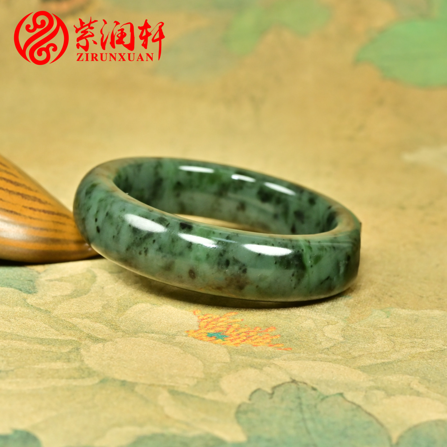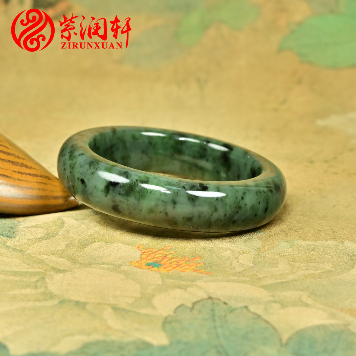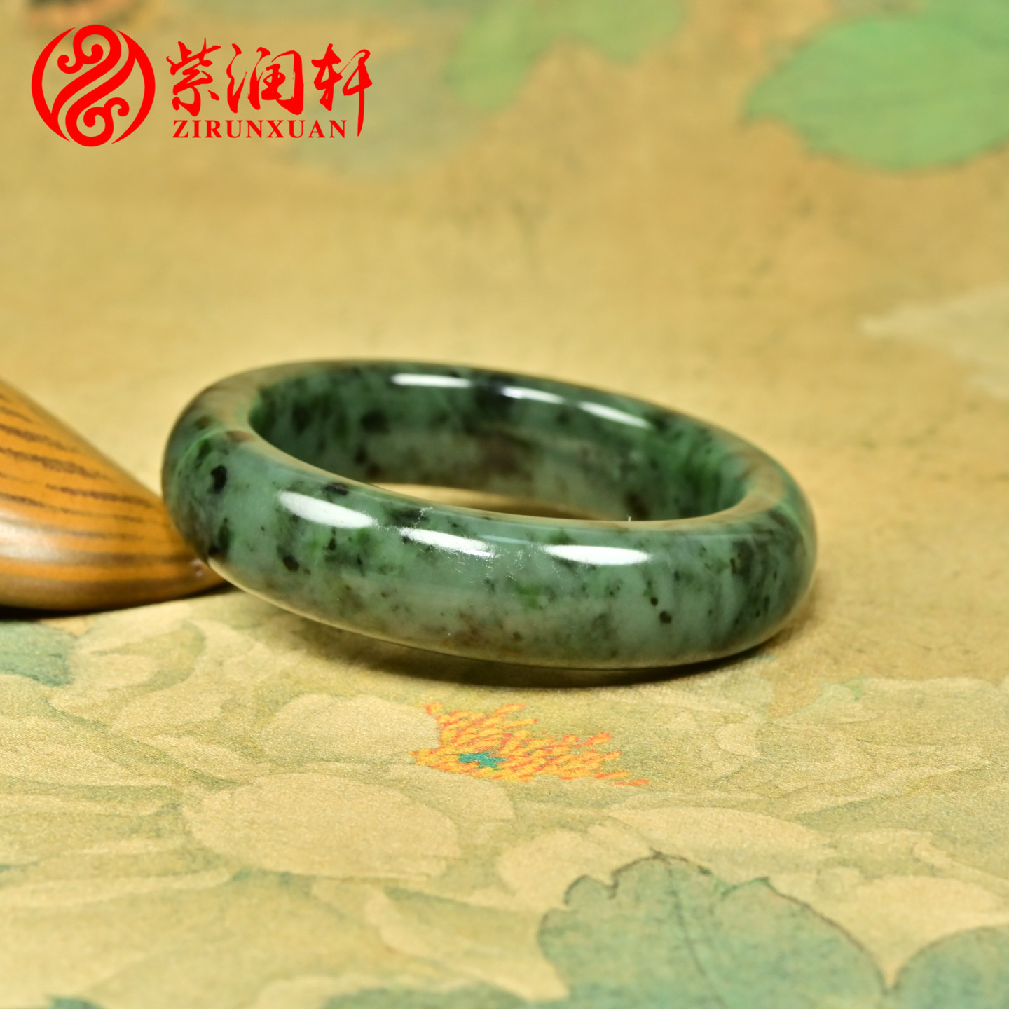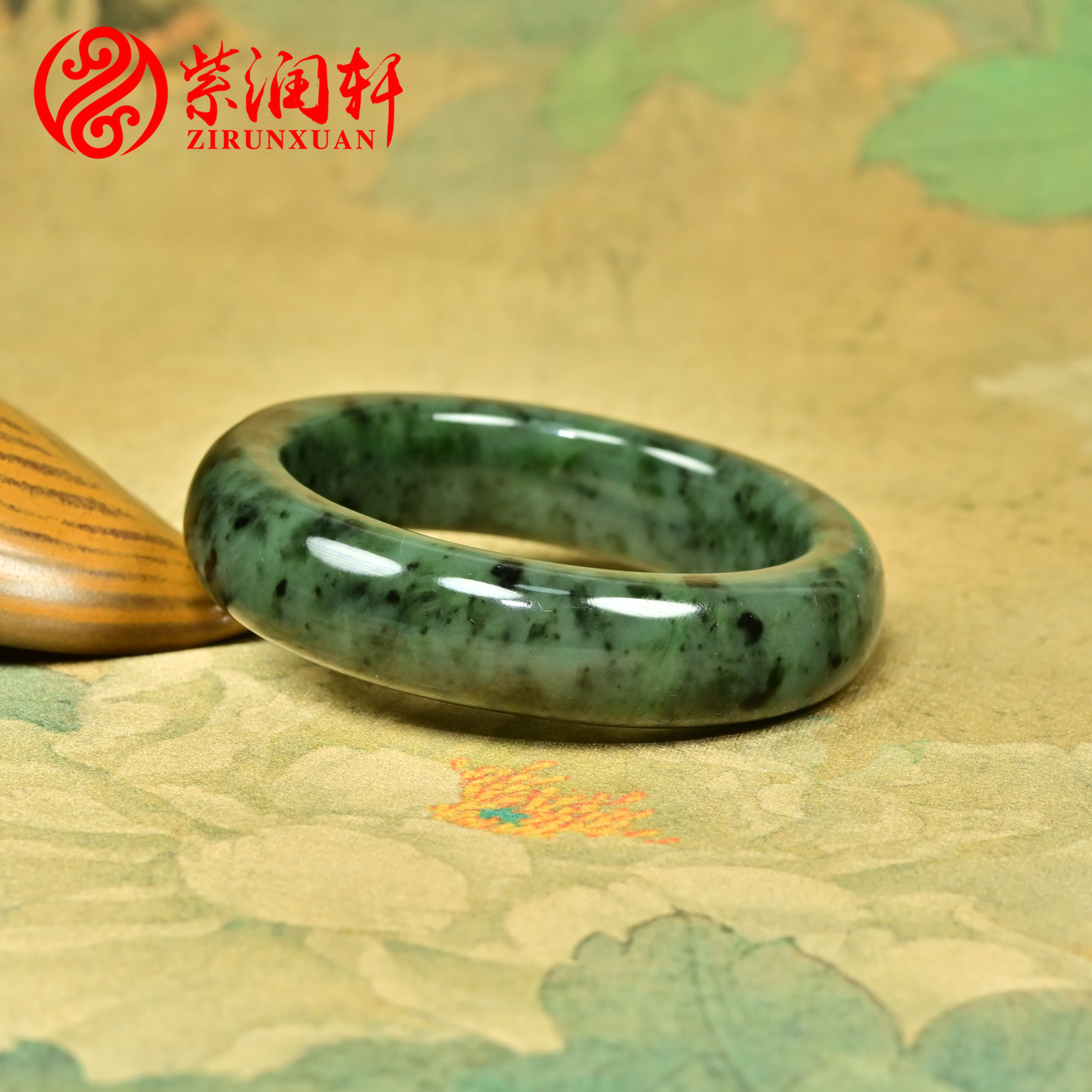 📚 紫润轩新疆和田玉碧玉籽料手镯白加绿50 5MM飘翠青宽条玉镯收藏级