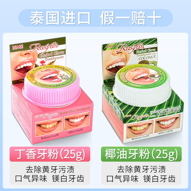 📚 泰国萨瓦迪卡丁香牙粉美白去黄清洁污垢溶解牙石洗白rasyan洁牙粉
