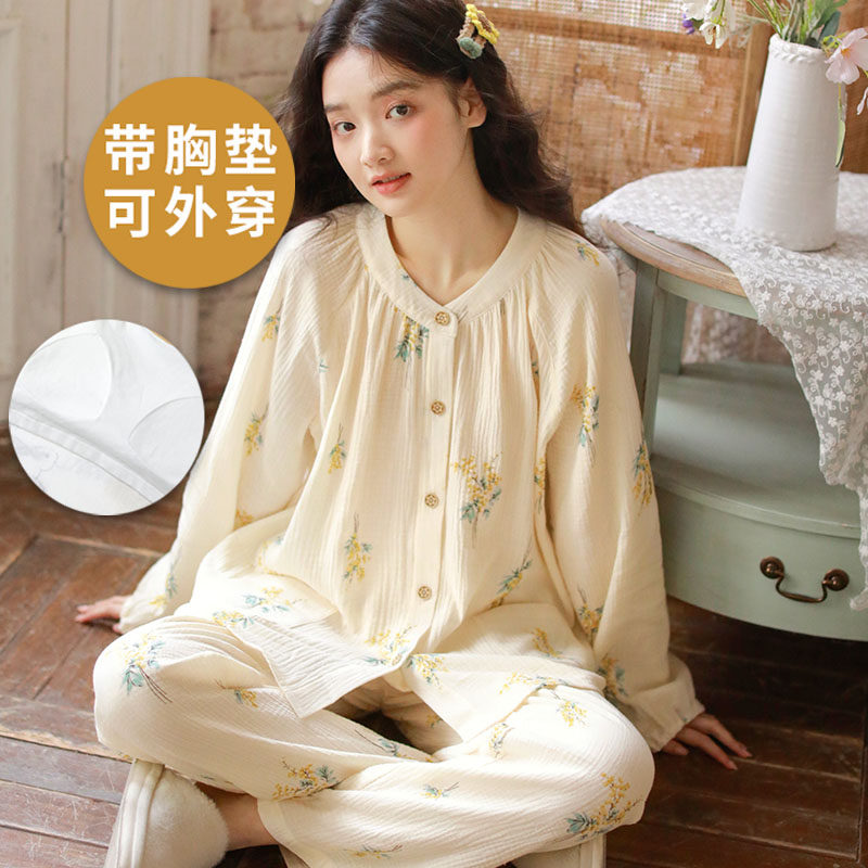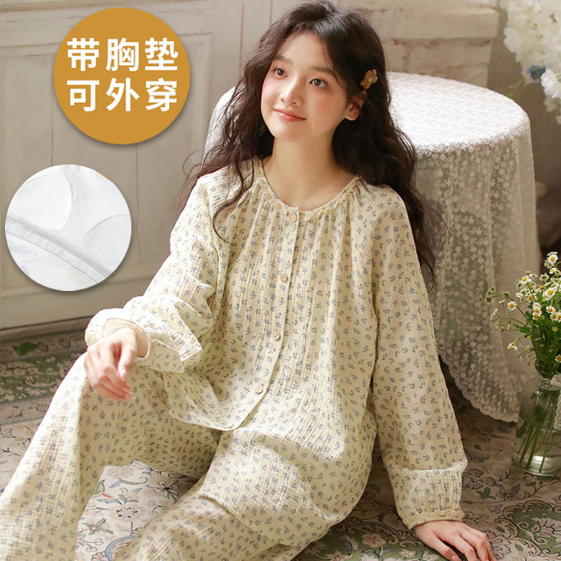 💫走进这家店,第一眼就被这款新款韩式家居服所吸引。无论是面料还是设计,都让人爱不释手。纯棉质地柔软舒适,手感超棒,穿在身上简直就像云朵般轻盈。这款睡衣的设计非常贴合人体曲线,带胸垫的款式更是增添了几分女性魅力。