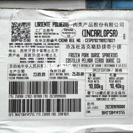 📚 西班牙冷冻杜洛克猪肋排带小排20斤进口猪排骨西餐煎烤炖烤肉