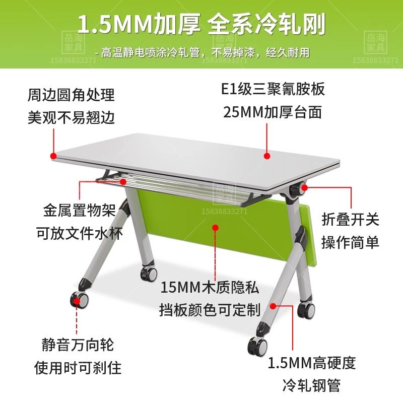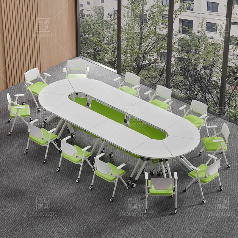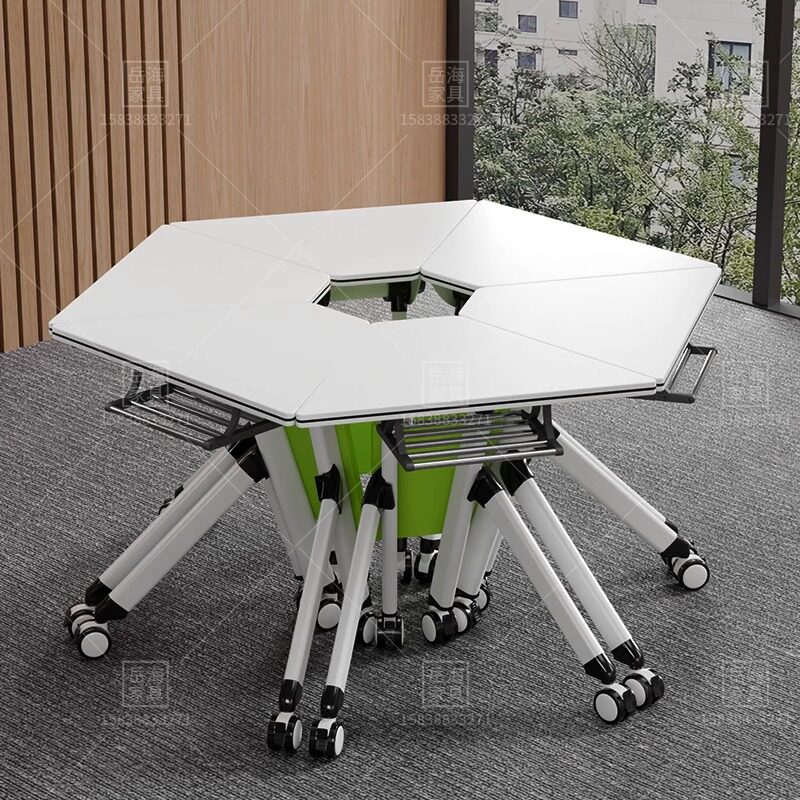 📚 折叠培训桌椅组合多功能移动拼接智慧教室六边形洽谈圆长条会议桌