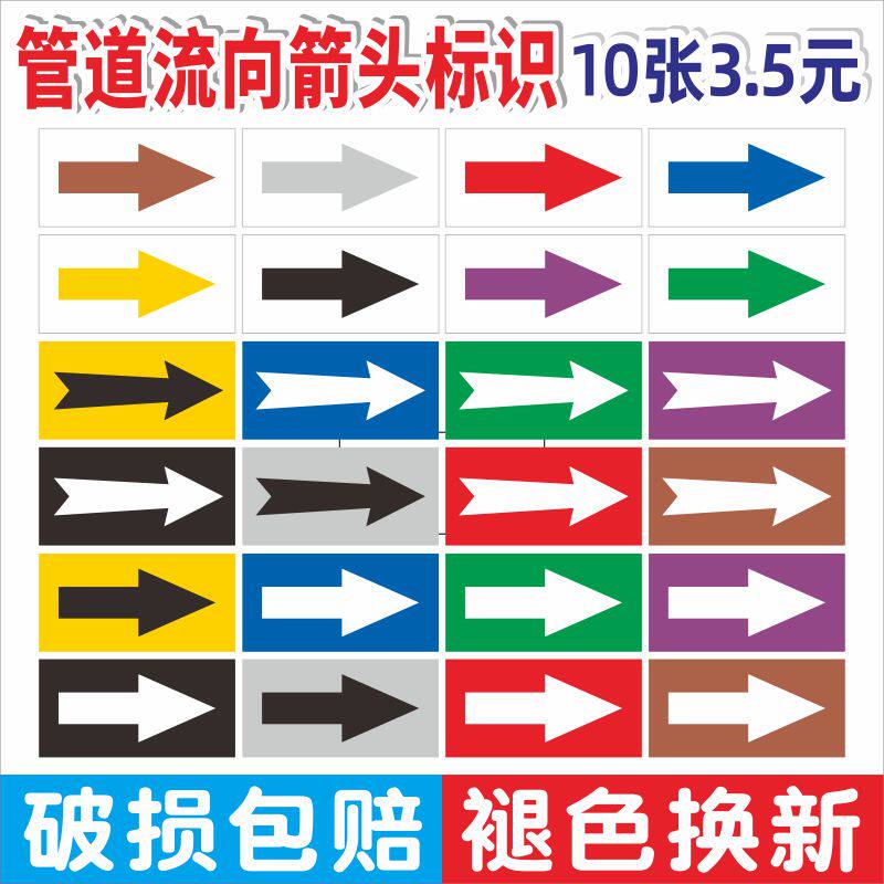 📚 管道流向指示防水标签国标流向箭头自来水进水回水压缩空气蒸气管路方向警示牌化工介质色环标示反光提示警告