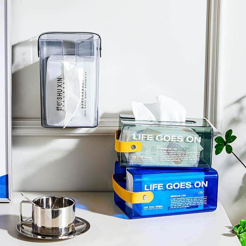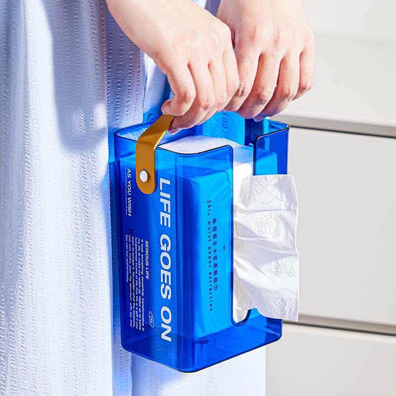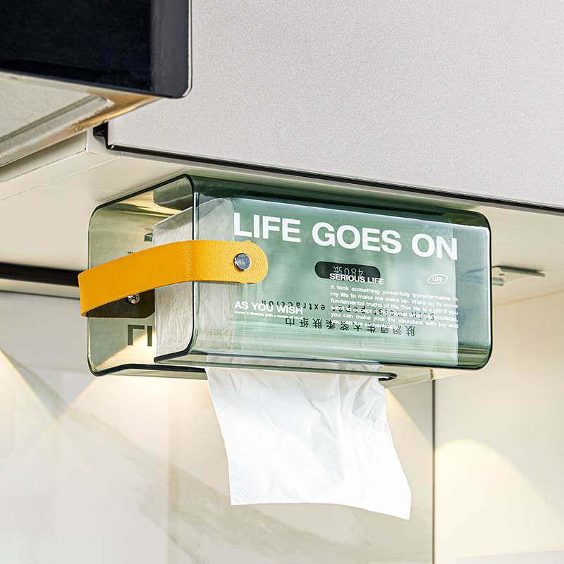 📚 桌下纸巾盒高档倒挂镜柜下厨房抽纸盒壁挂式免打孔透明纸巾收纳盒