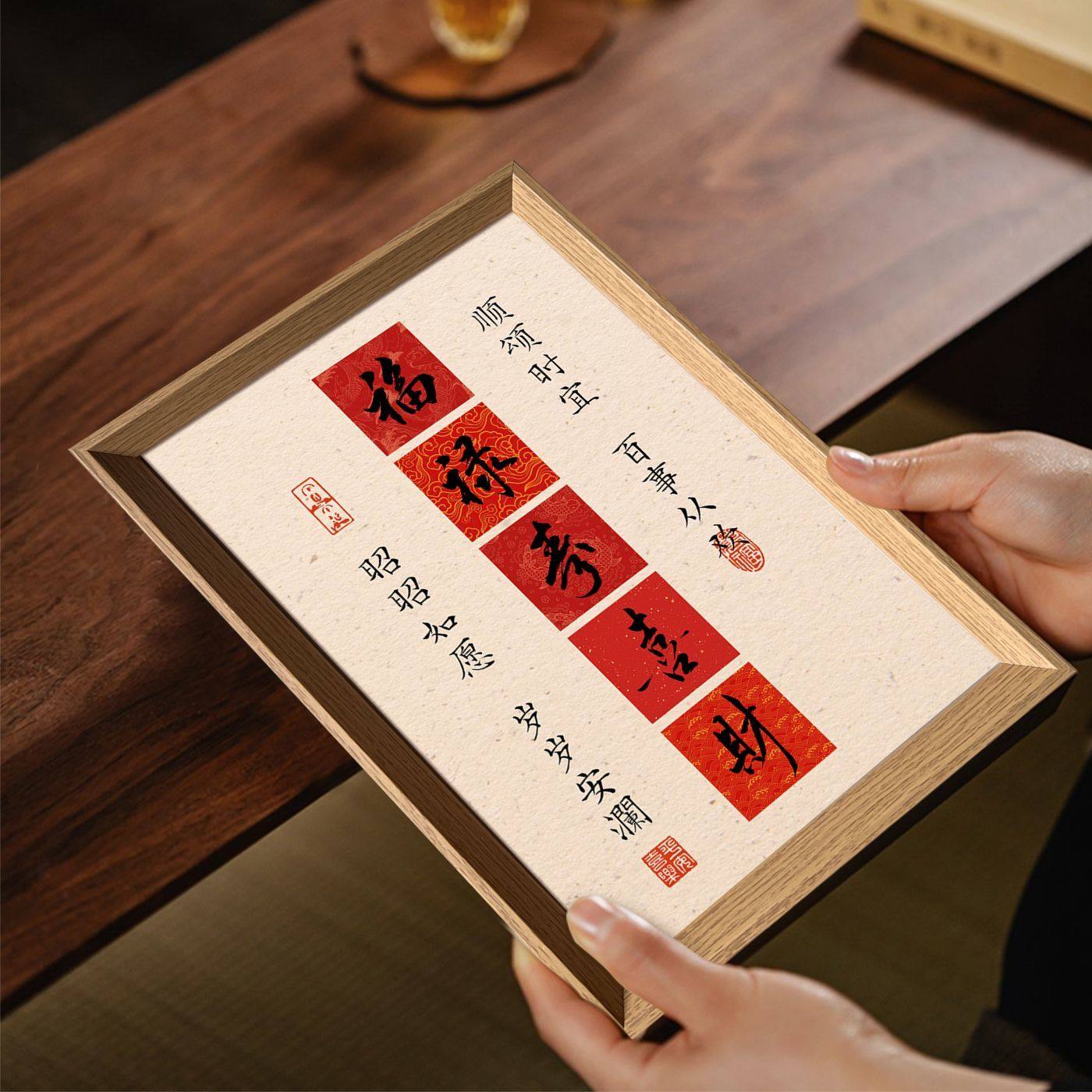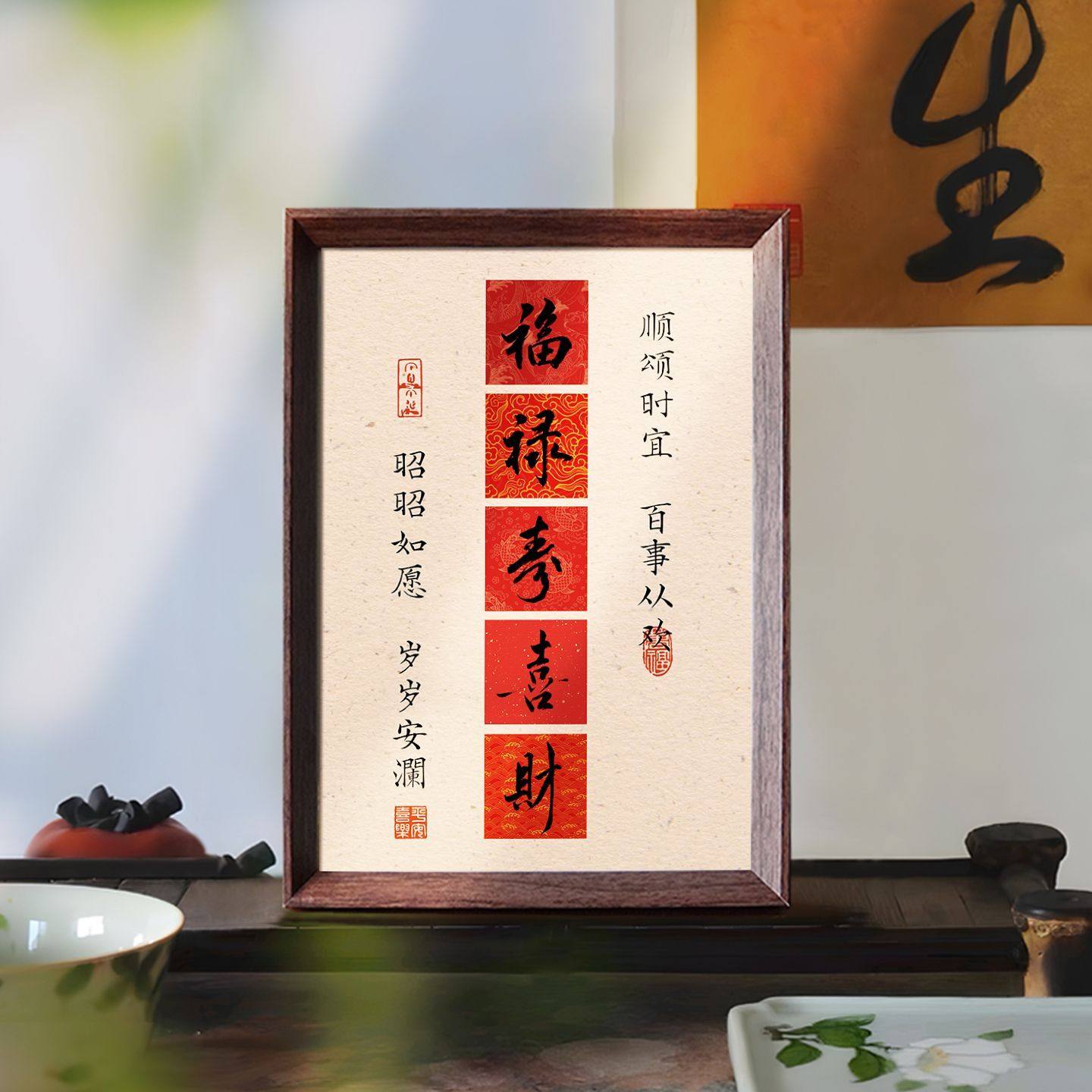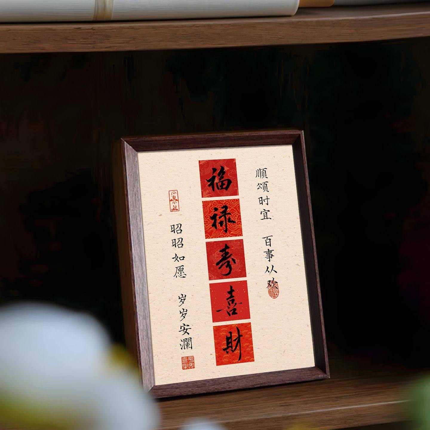 📚 福禄寿喜财好寓意喜庆书法新中式相框卧室客厅玄关桌面摆件装饰画