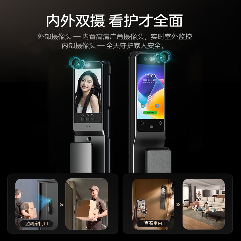 📚 新型智能门锁密码锁双屏双摄入户门指纹锁远程控制门锁带监控摄像