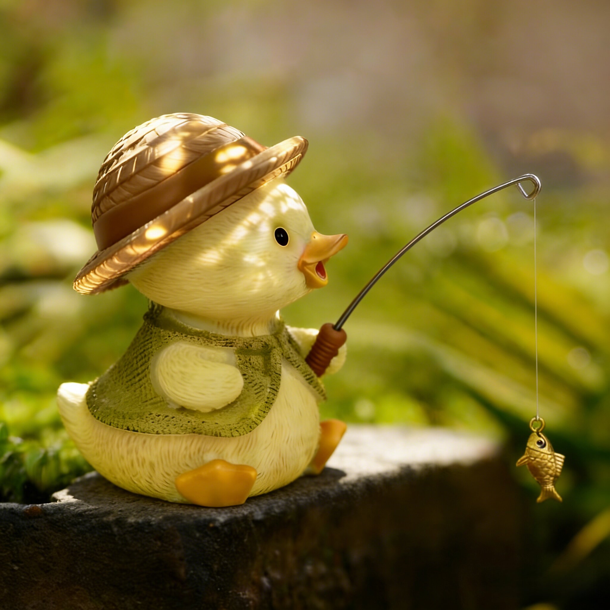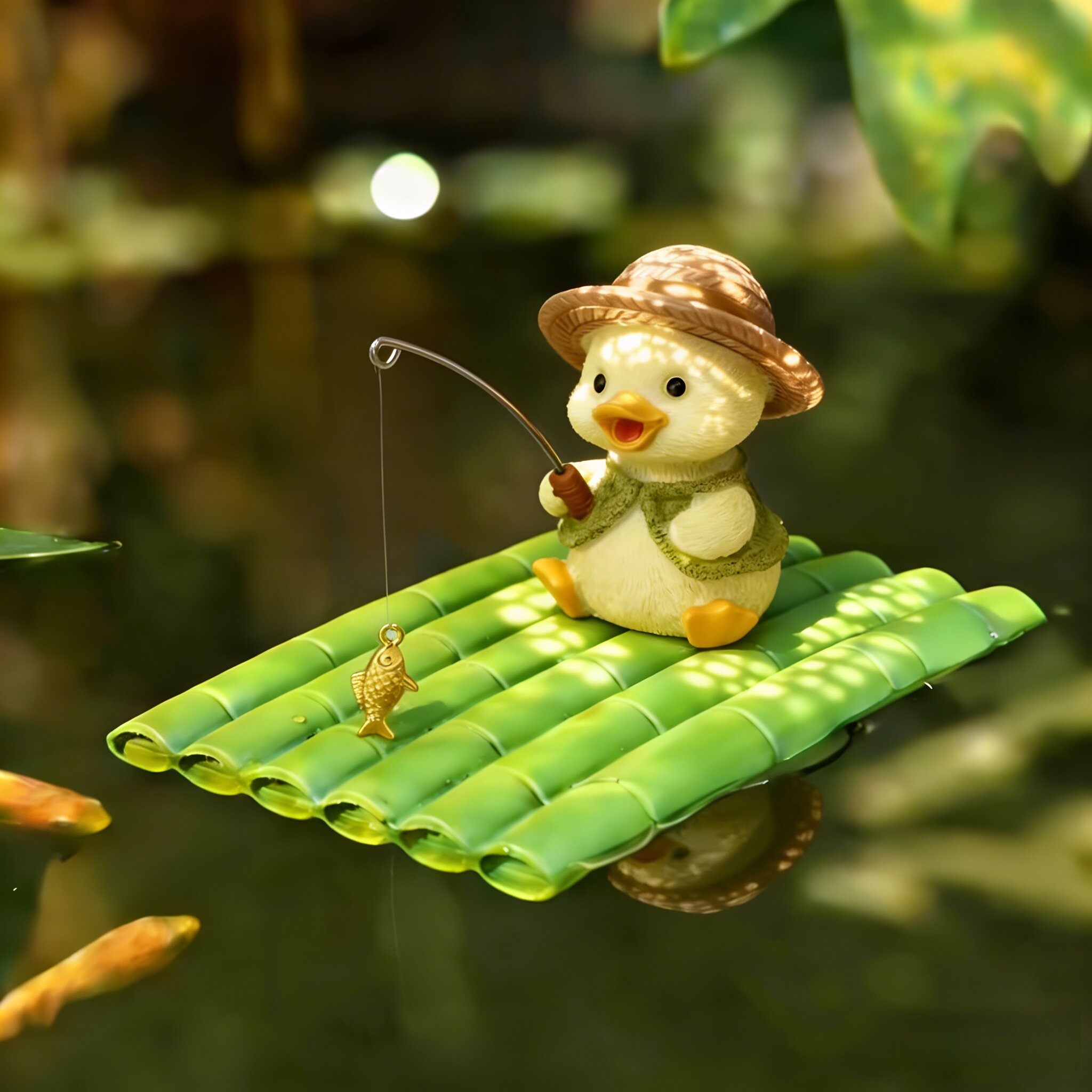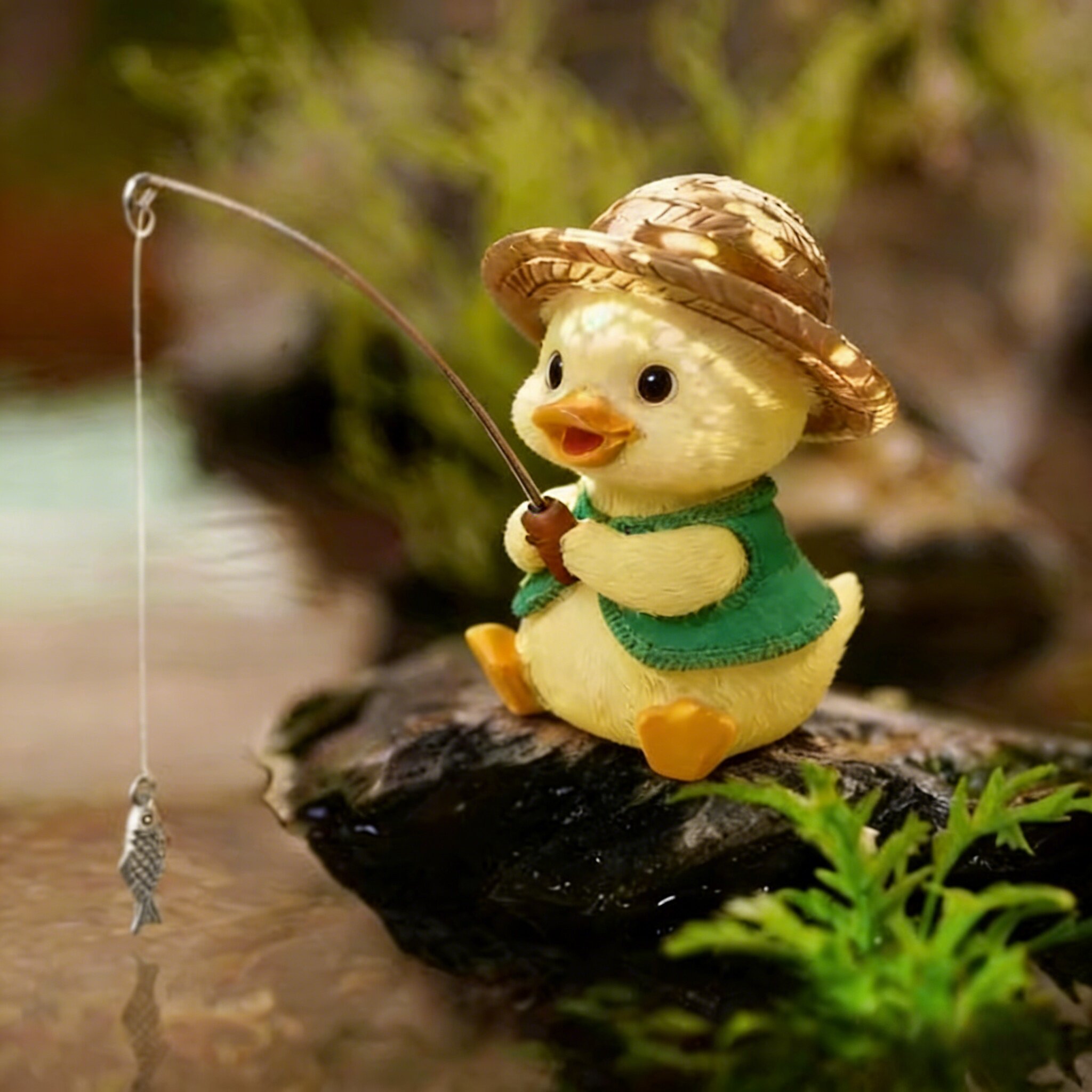 📚 高级鱼缸造景摆件全套可爱小黄鸭子钓鱼工位改造室内假山流水景观