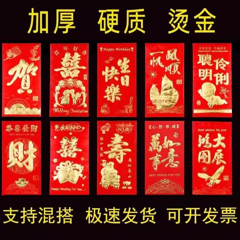 📚 红包春节硬卡纸利是封婚庆婚礼结婚新年创意红包永吉 百元红包袋