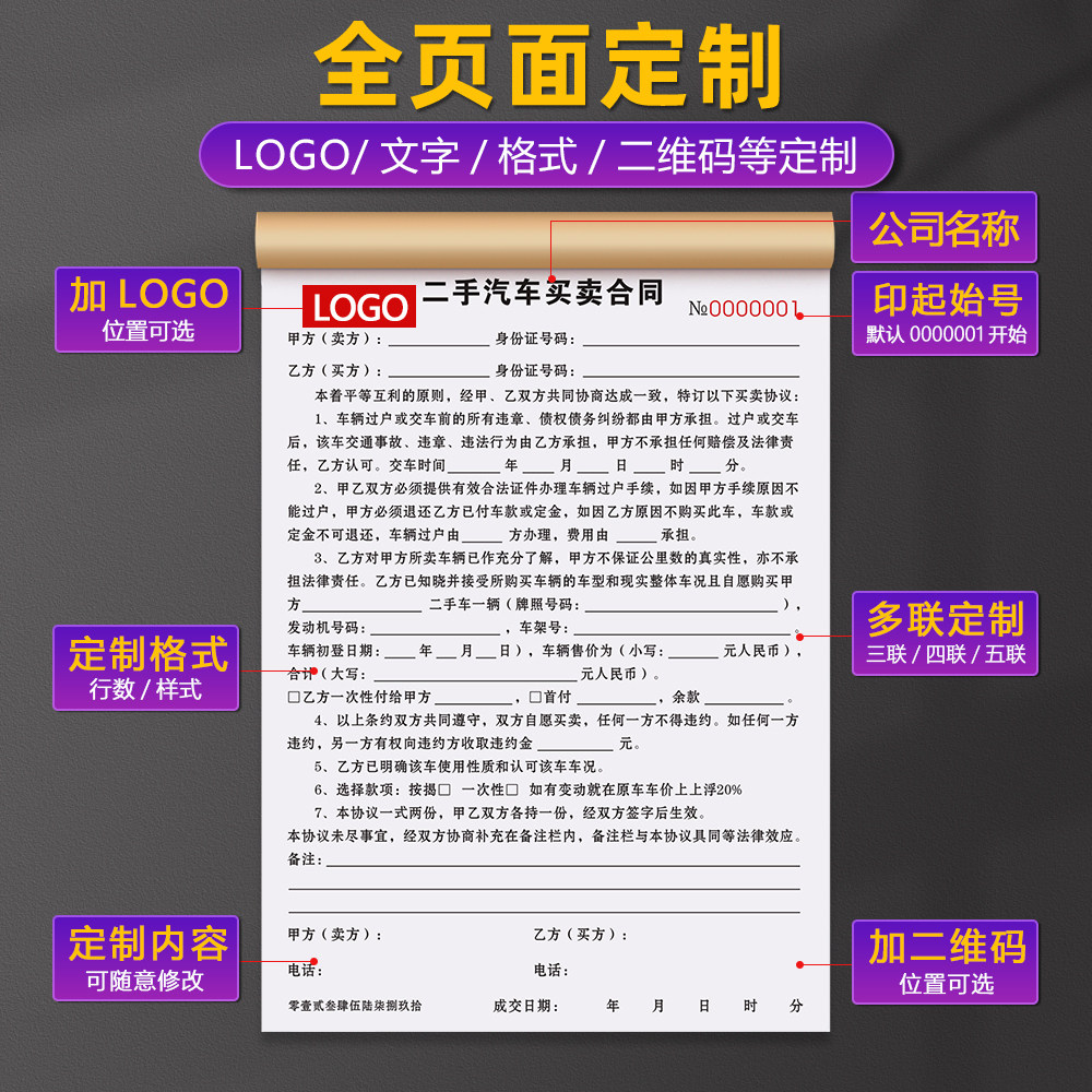 📚 【车商免责】二手车买卖协议书二联摩托车货车面包车购车合约电动新能源车辆转让单据机动车汽车收车交易合同