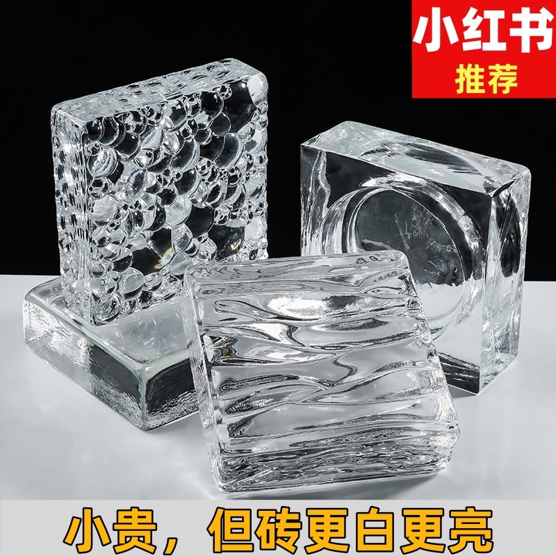 📚 超白方砖玻璃砖水晶砖透明方形冰纹实心隔断墙卫生间客厅玄关卧室