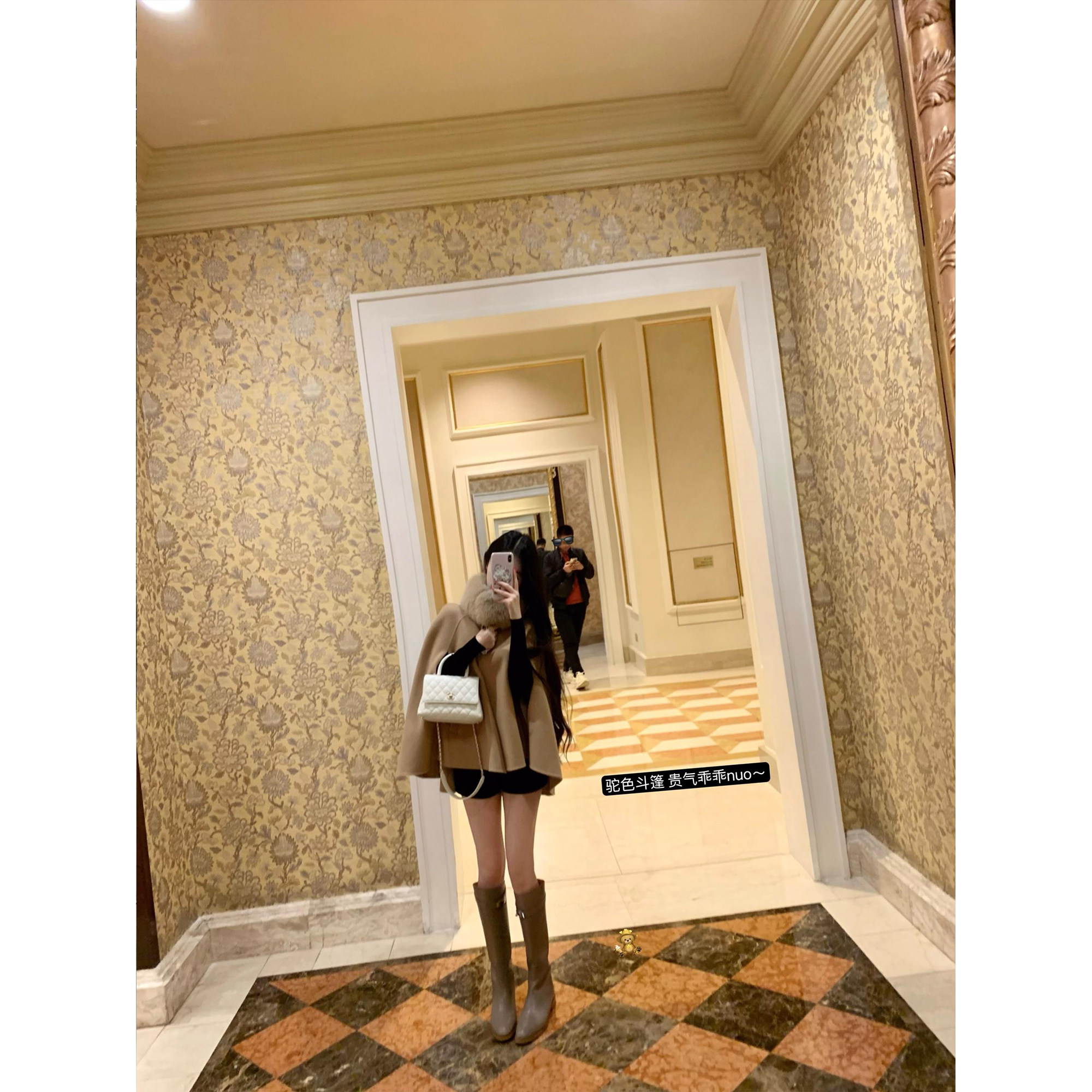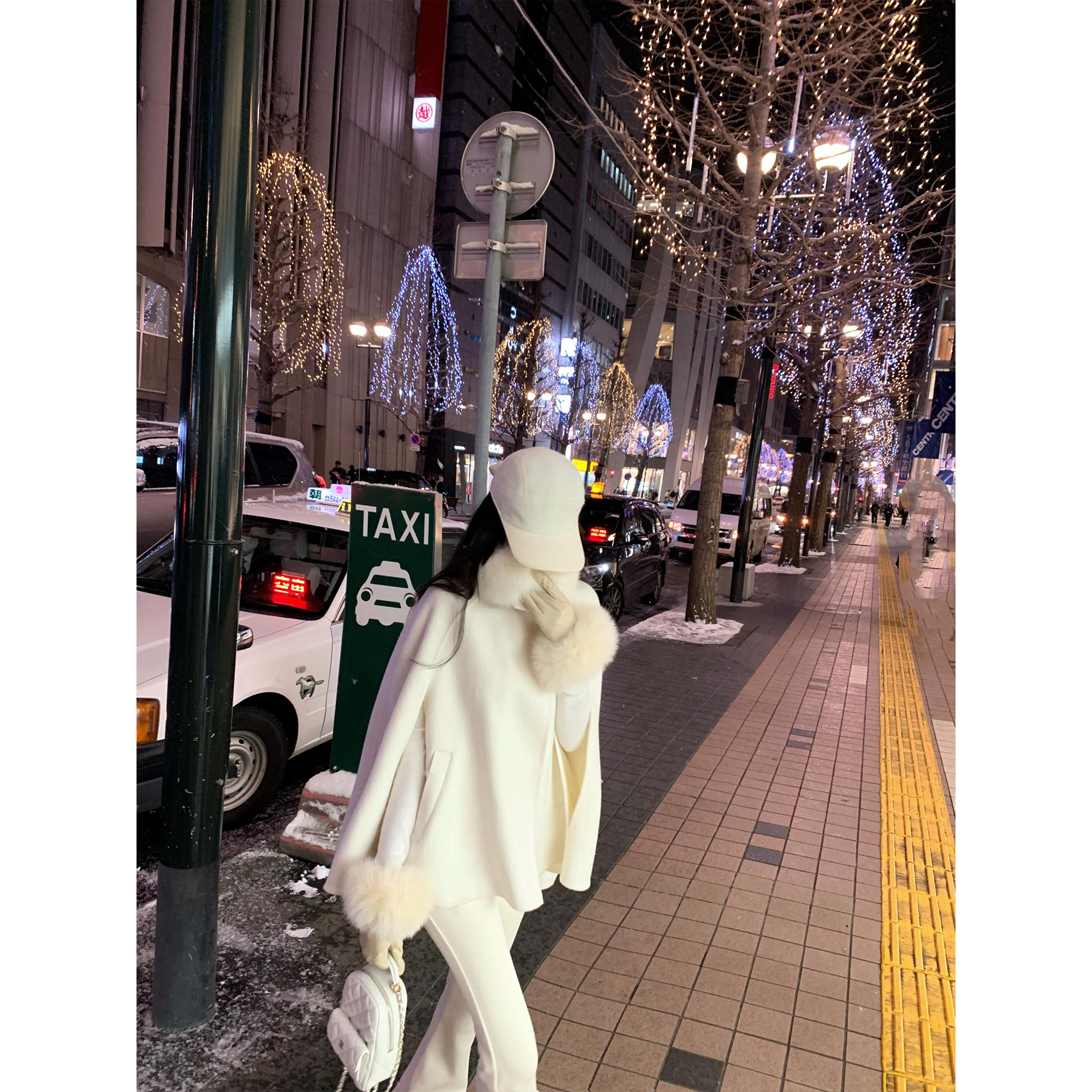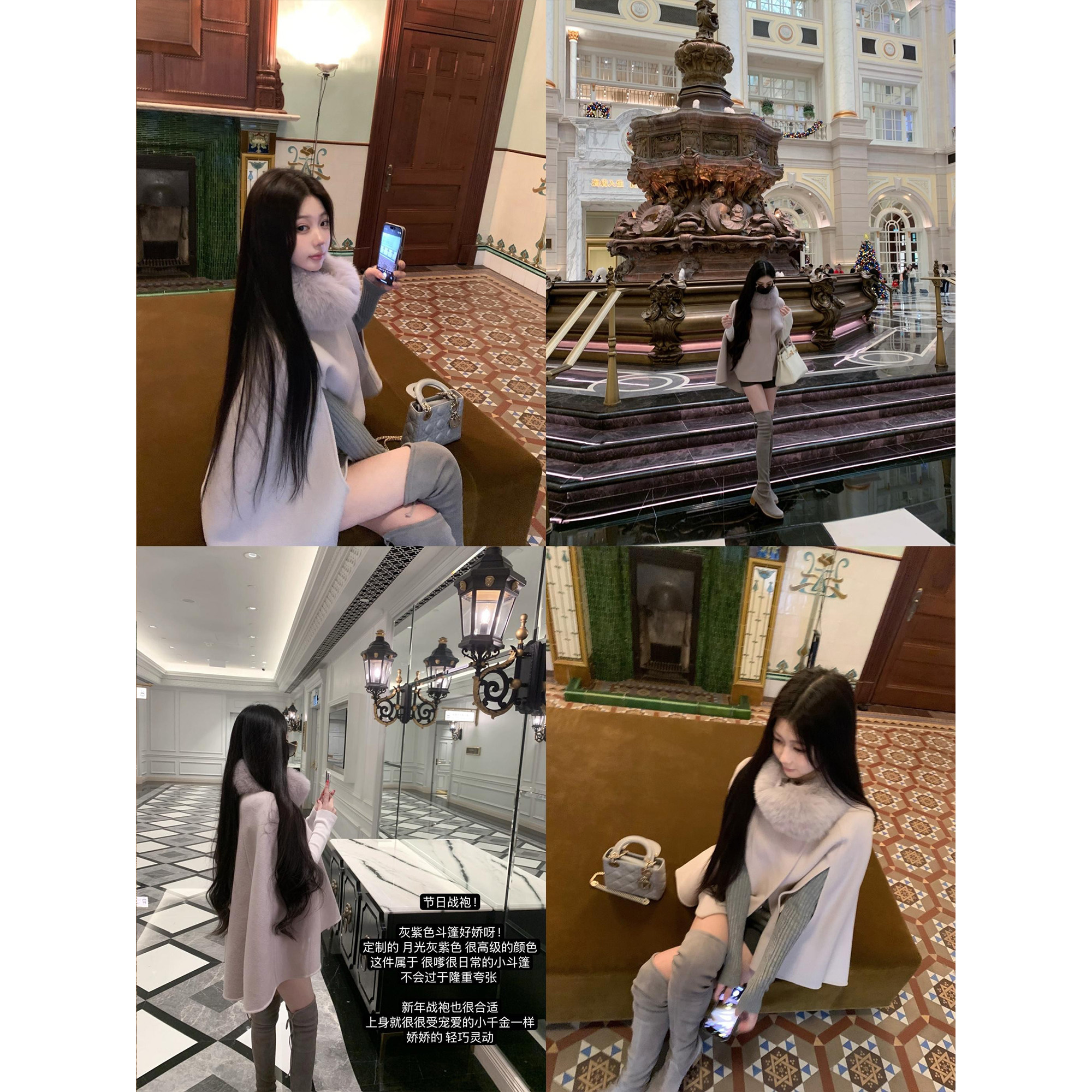 📚 POET WONG【月光斗篷】仙仙 真狐狸毛围脖+100羊毛大衣可拆卸毛领