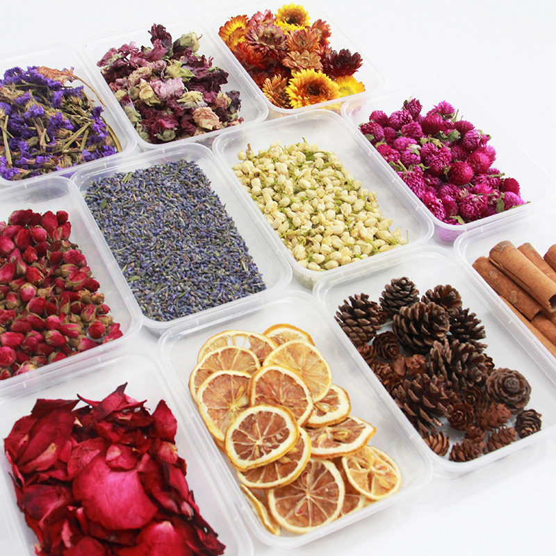 📚 玫瑰花苞茶肉桂薰衣草勿忘我柠檬片金盏菊松果植物干花精油皂材料