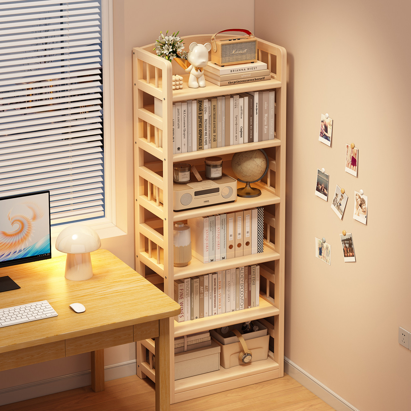 📚 实木书架落地置物架客厅书柜储物柜一体靠墙儿童书房书本收纳架子