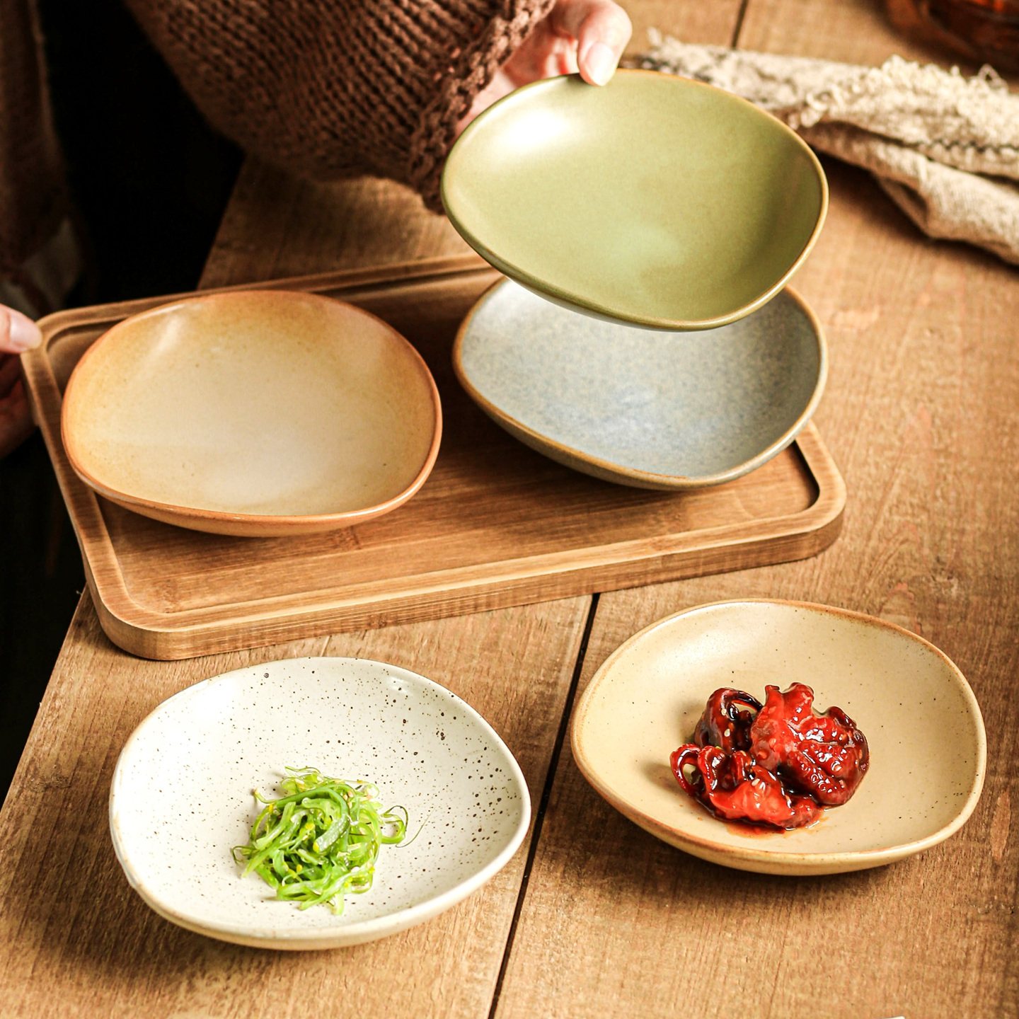 📚 异形盘子高级小餐盘5寸日式小菜碟陶瓷菜盘家用粗陶餐具装凉菜盘