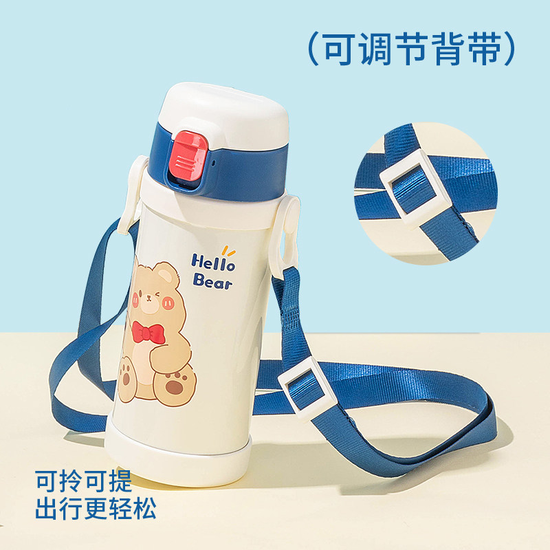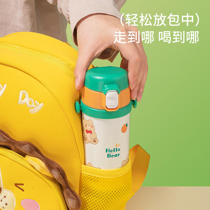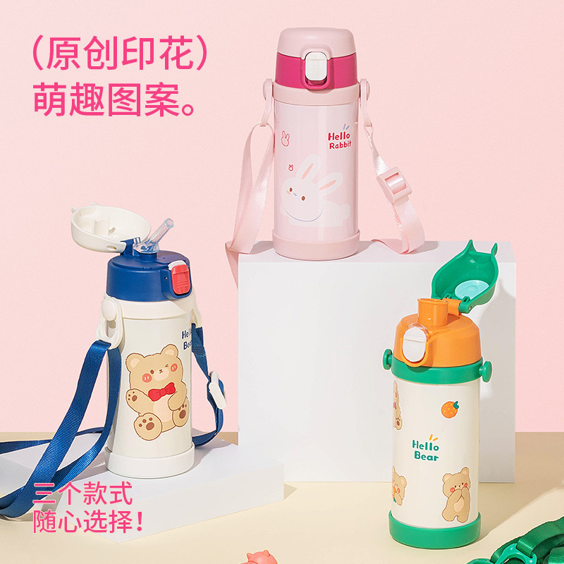 📚 男女学生宝宝儿童可爱卡通316不锈钢保温杯带背带吸管杯防漏便携