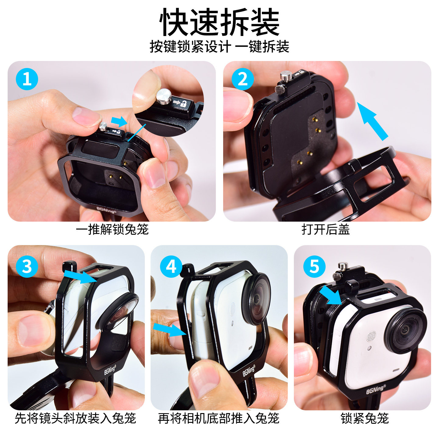 📚 BGNing 适用Insta360 GO Ultra可充电兔笼拇指相机影石360 GO Ultra充电散热不死机横竖拍铝合金兔笼保护框