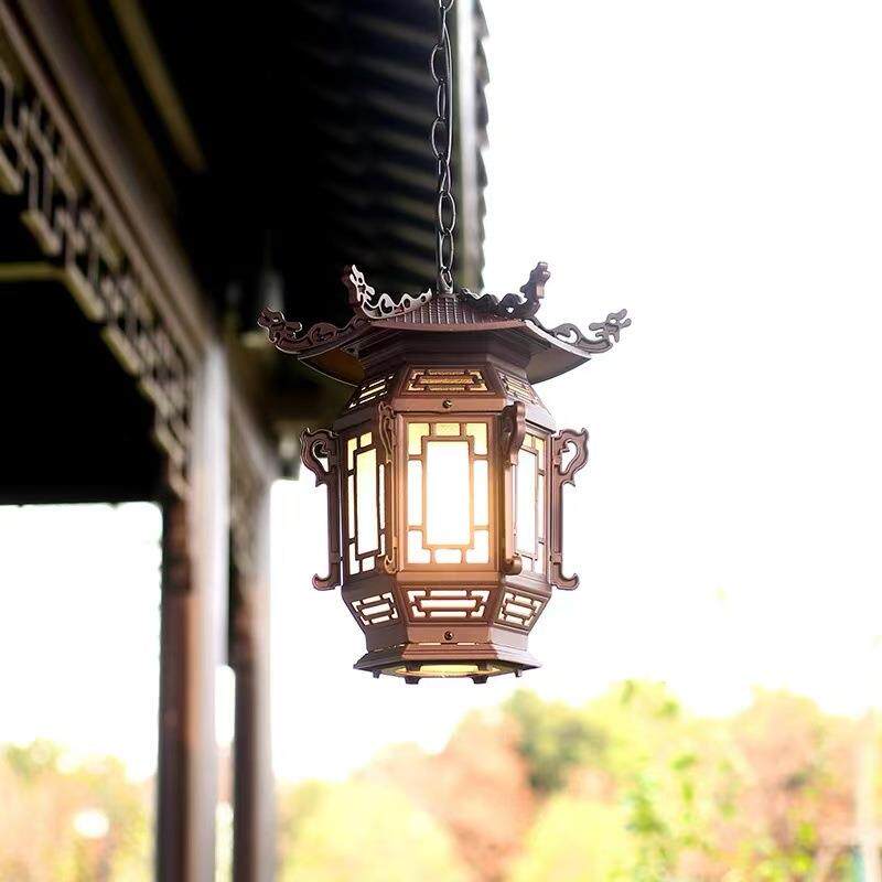 📚 吊灯屋檐茶楼长廊别墅景观灯仿古凉亭灯笼led庭院灯专用太阳能