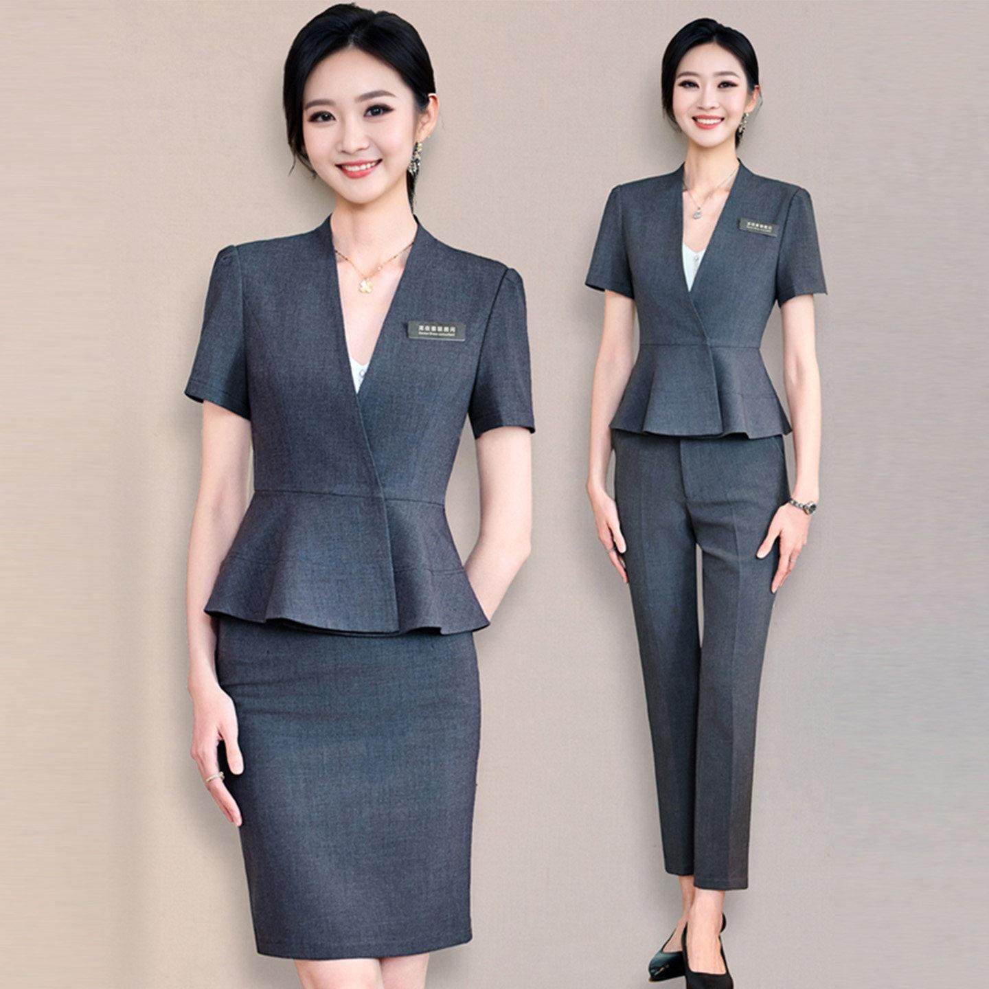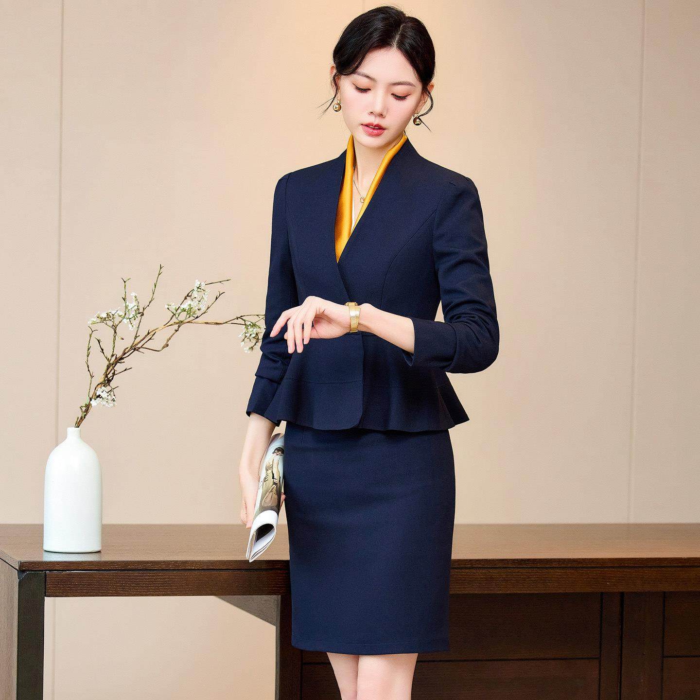 📚 西装套装女气质美容院医美会所酒店前台职业正装黄金珠宝店工作服