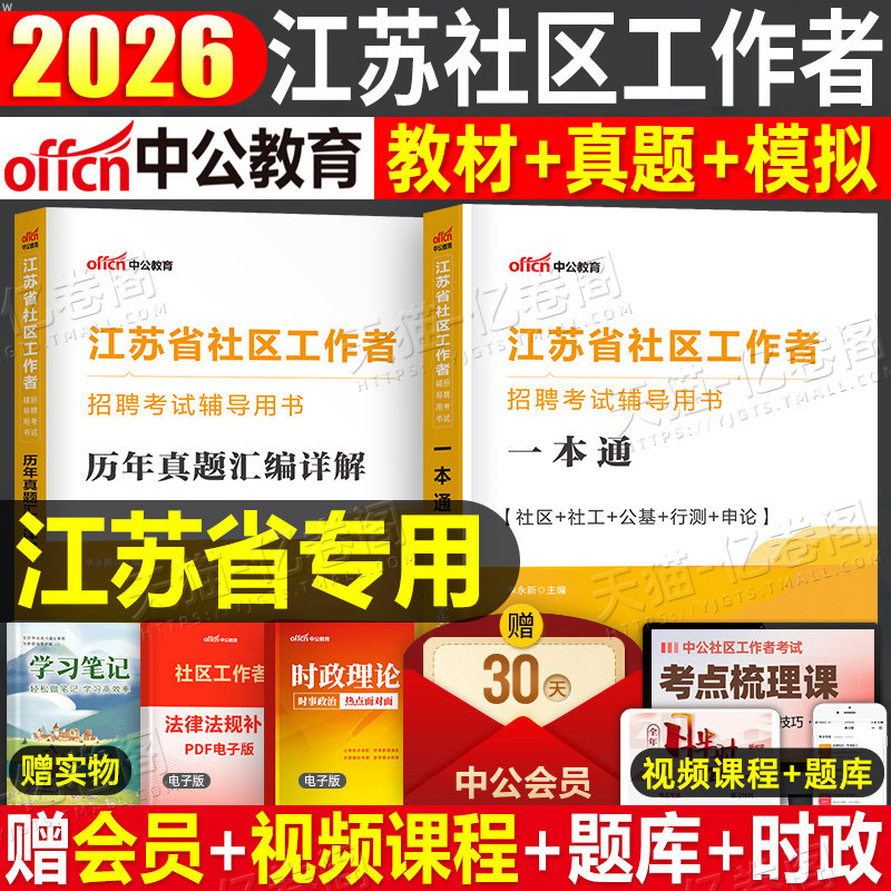 📚 中公2026年江苏省社区工作者考试教材书社工招聘一本通行测申论历年真题库试卷刷题资料网格员专职2025公共基础知识初级中级南京市
