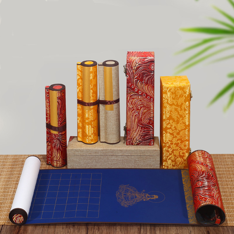 📚 精裱抄经卷轴挂画三开空白手写宣纸手卷毛笔字书法作品挂轴装饰画