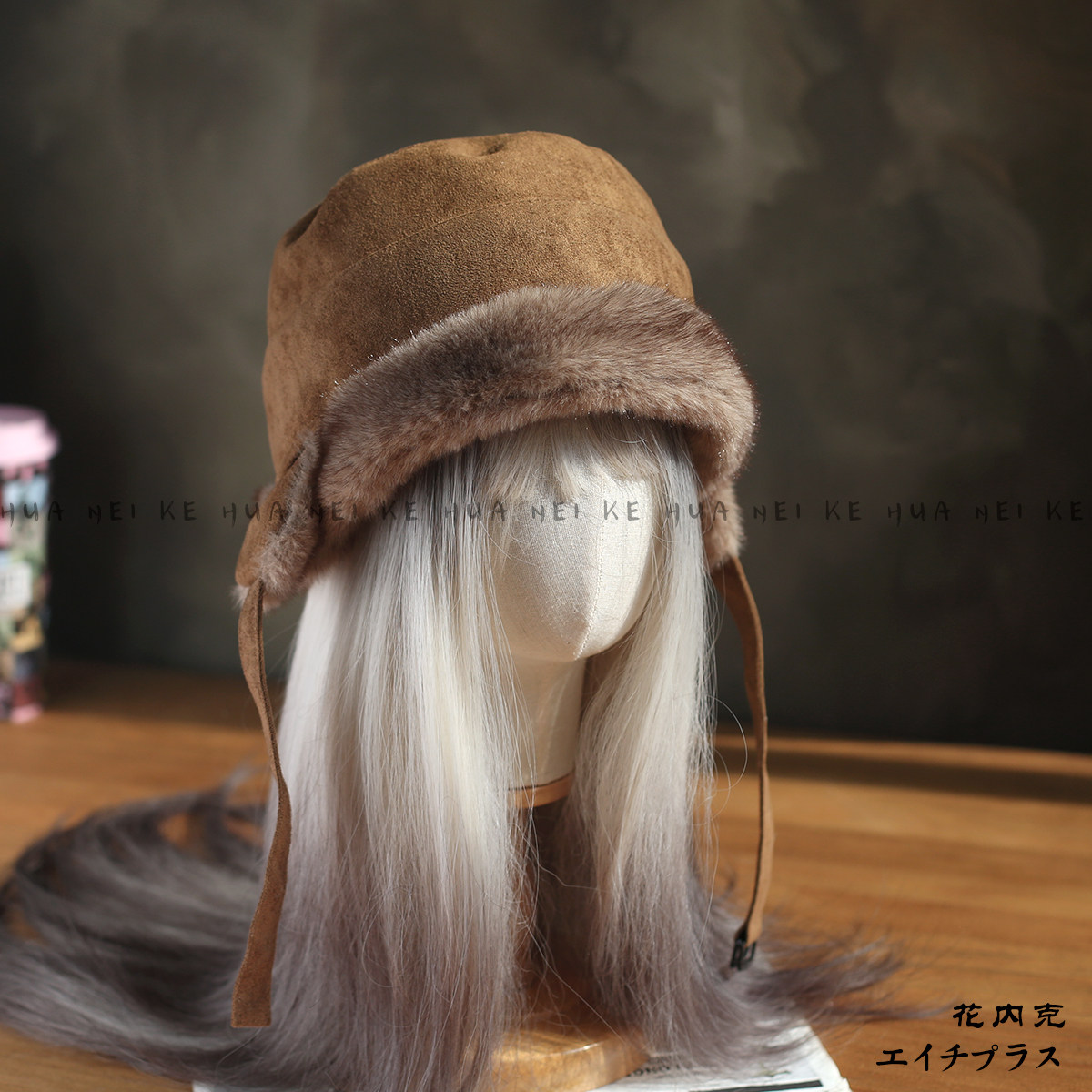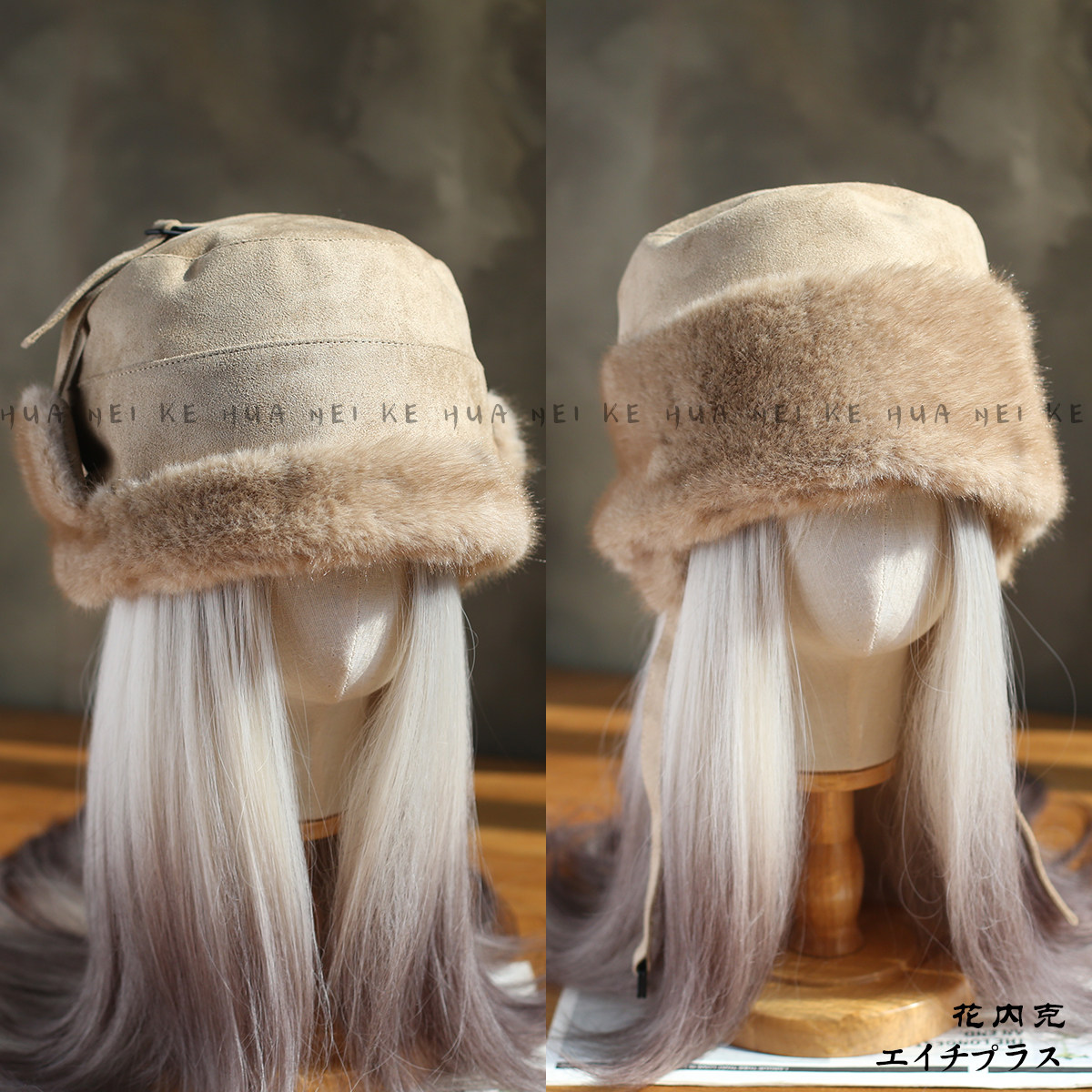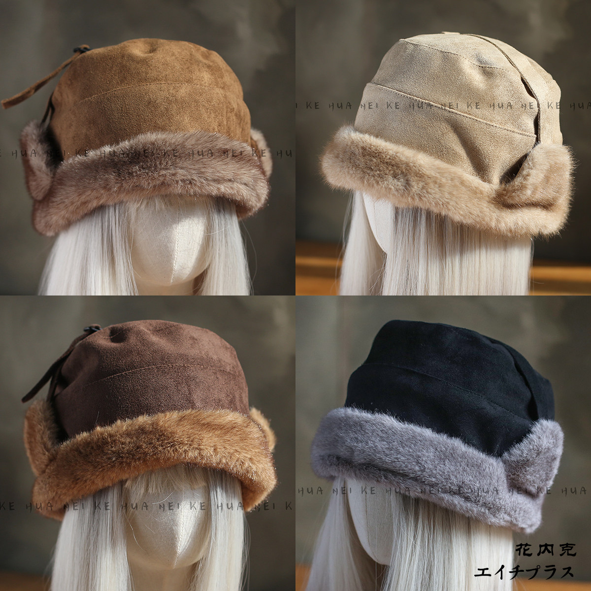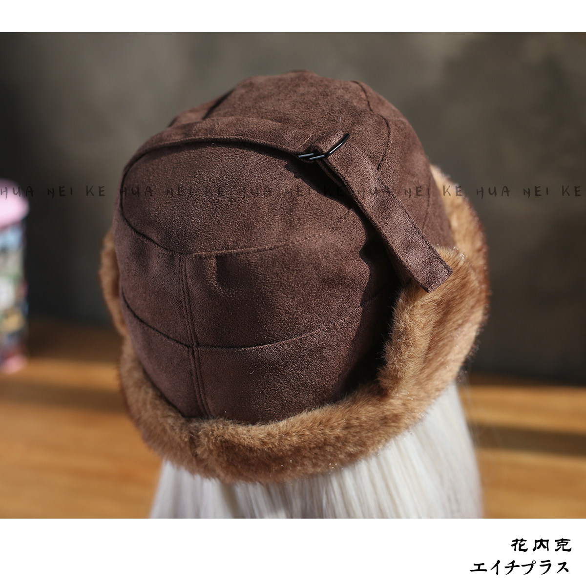 📚 出口日韩~双面戴麂皮绒保暖毛绒护耳渔夫帽女秋冬防寒雷锋帽046