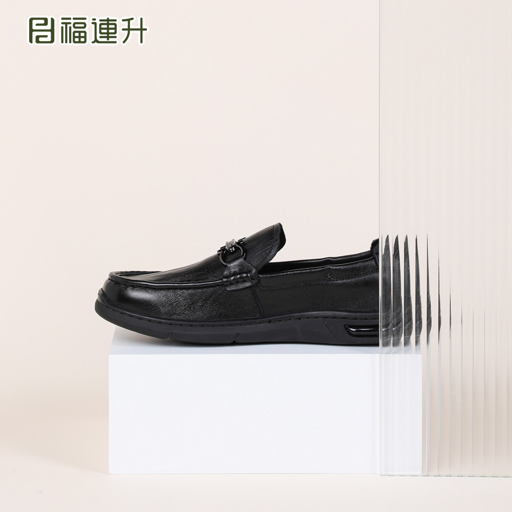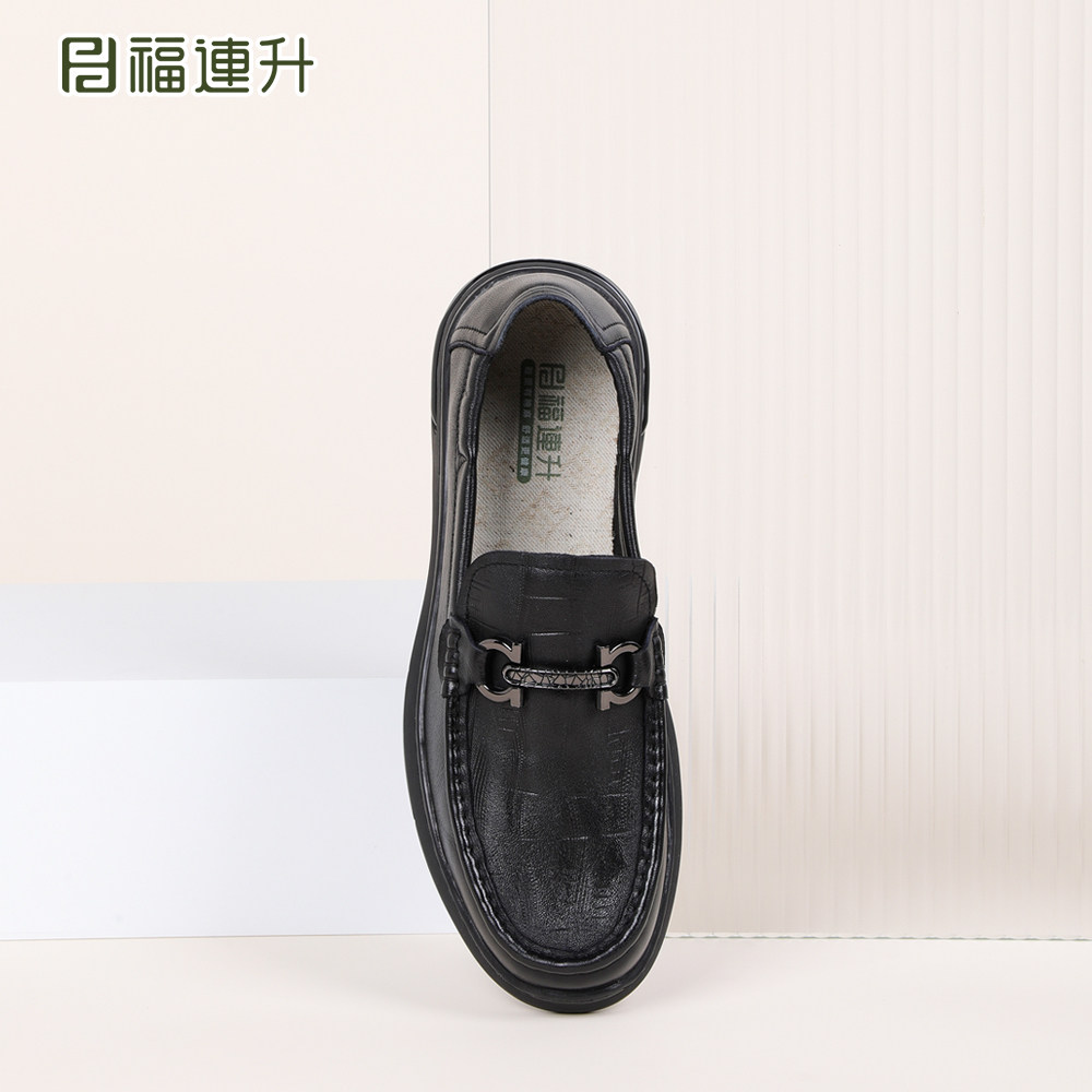 📚 福连升2025秋款男鞋真皮休闲皮鞋豆豆鞋软底舒适厚底一脚蹬懒人鞋