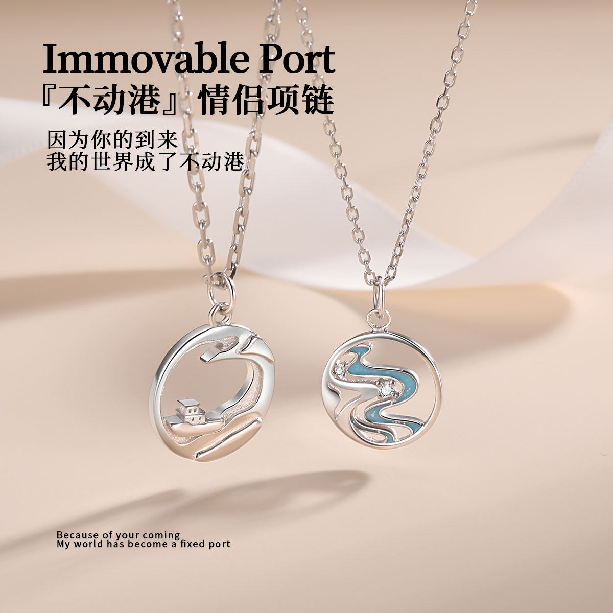 📚 【不冻港】纯银情侣项链一对小众设计礼物纪念定情信物情人节礼物