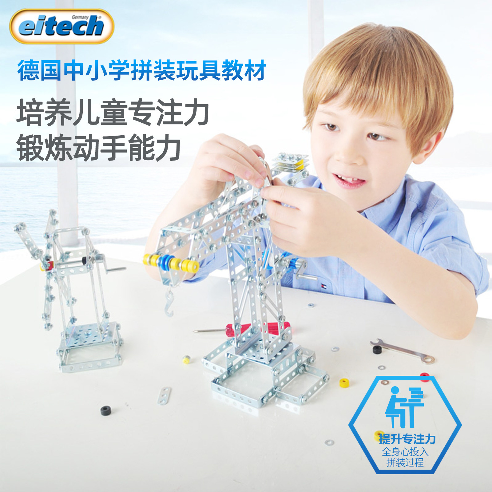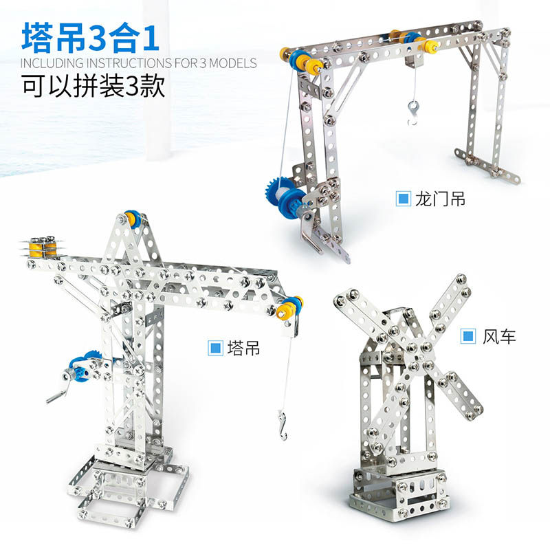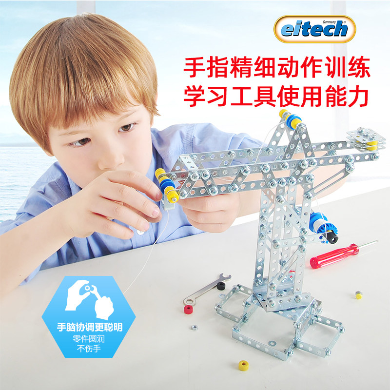 📚 Eitech德国塔吊3合1儿童金属拼装积木玩具男孩益智拧螺丝礼物8岁+