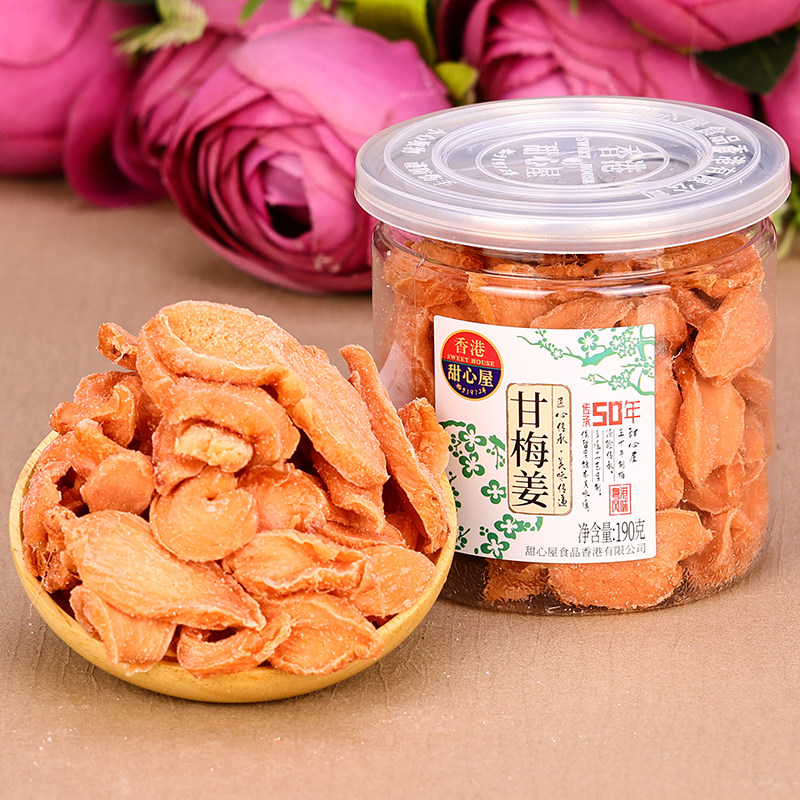 📚 香港甜心屋金梅姜218g红姜丝块咸甜辣五味姜冰醋姜干片坨甘梅话梅