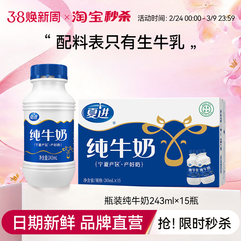 📚 【宁夏奶源】夏进纯牛奶整箱243ml*15瓶装牛奶全脂纯奶营养早餐