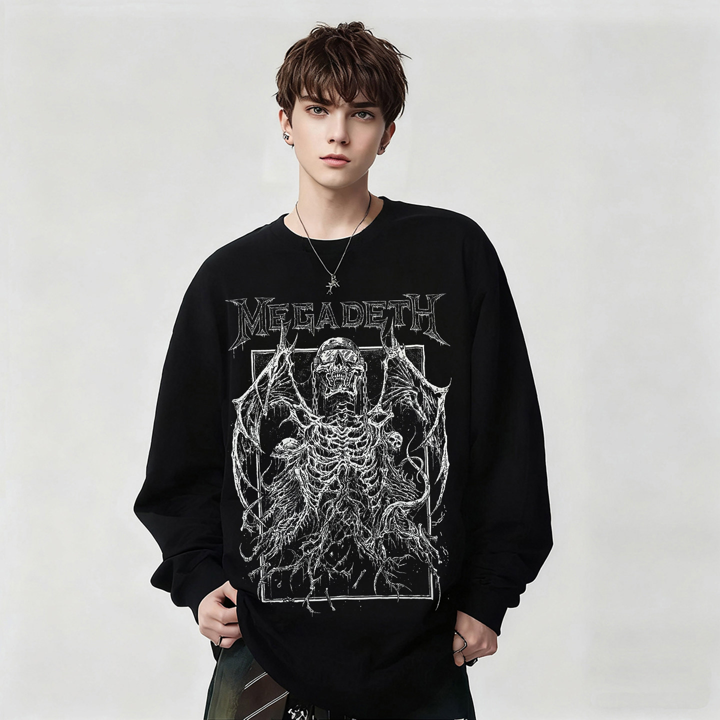 📚 MEGADETH乐队周边欧美激流金属摇滚印花纯棉长袖T恤上衣男女春秋