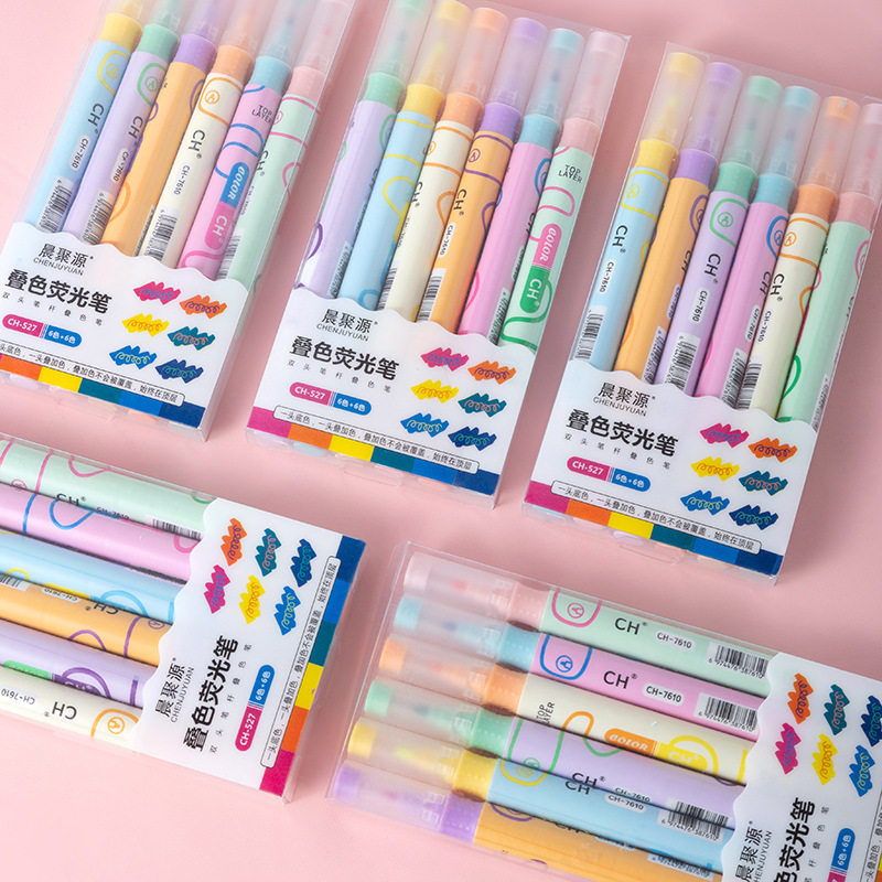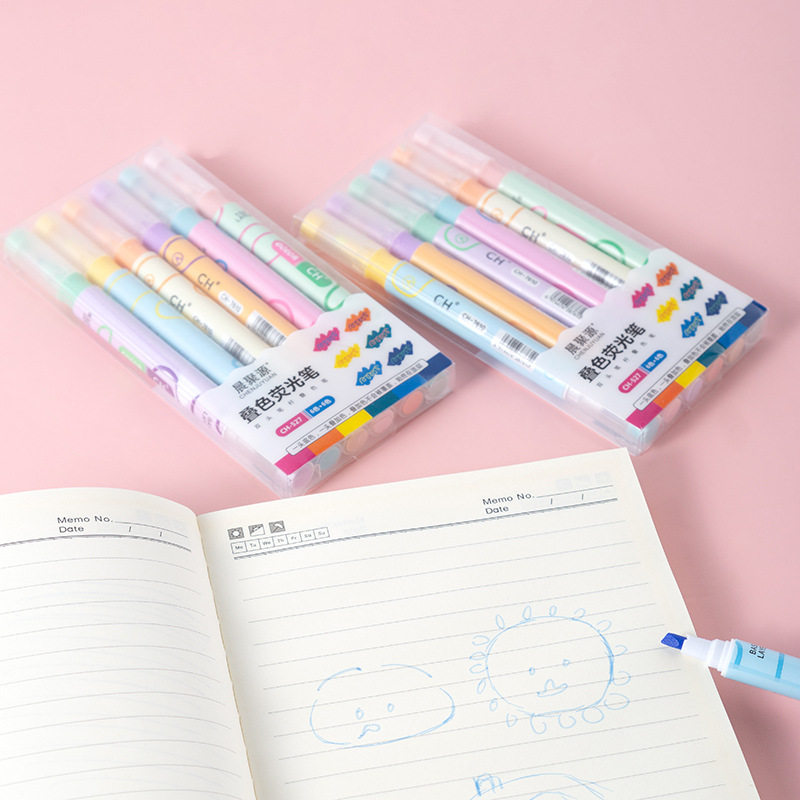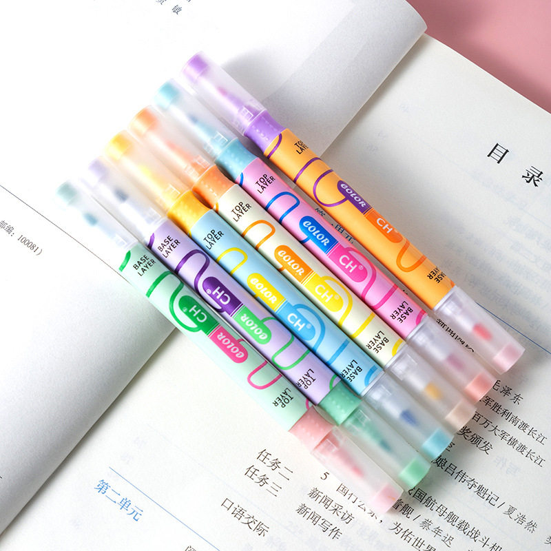 📚 叠色双头变幻色荧光笔学生彩色划重点记号笔高颜值记号手账标记笔